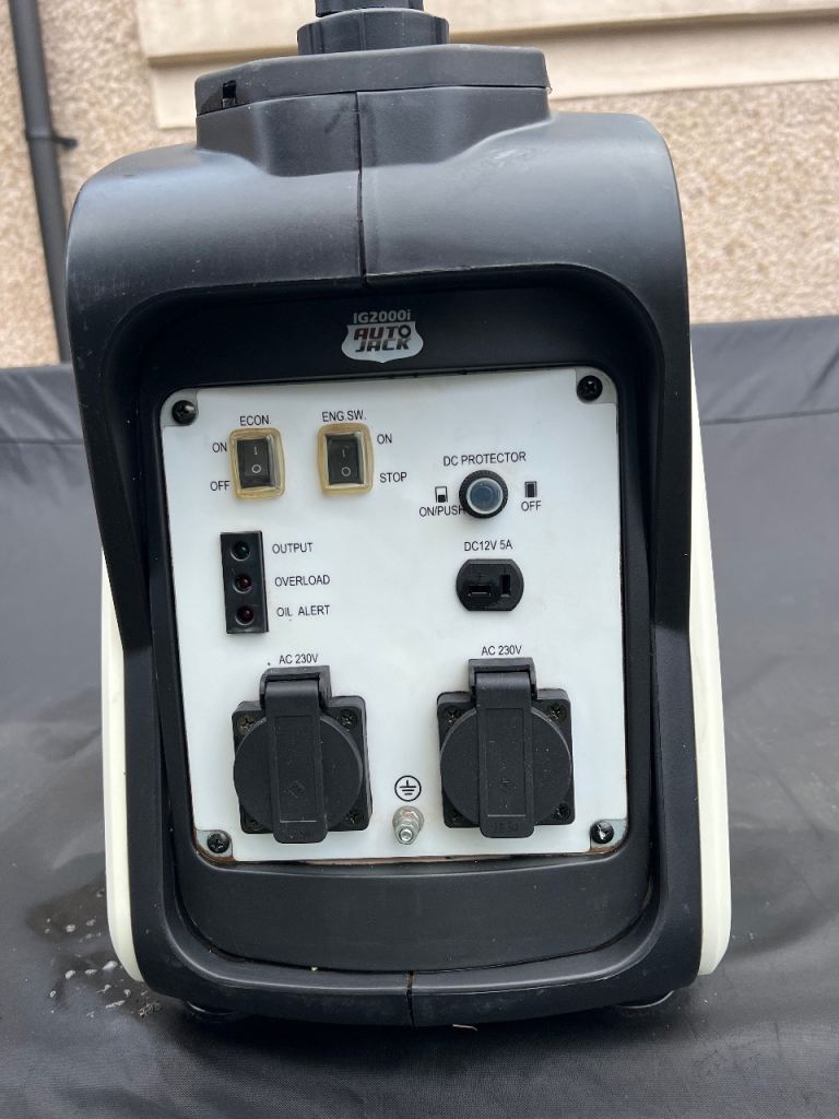 This is the IG2000i model which puts out 1800 watt constant. Has smart throttle to save on fuel and noise. Low oil cut off. Overload cut off. 4 stroke engine. 2 x 230 volt sockets. 12 volt 5 amp charging output. Runs for about 5 hours on one tank of fuel. Longer if using smart throttle. Very quiet running. Weighs 19kg. Comes with charging lead, spark plug socket and screwdriver.