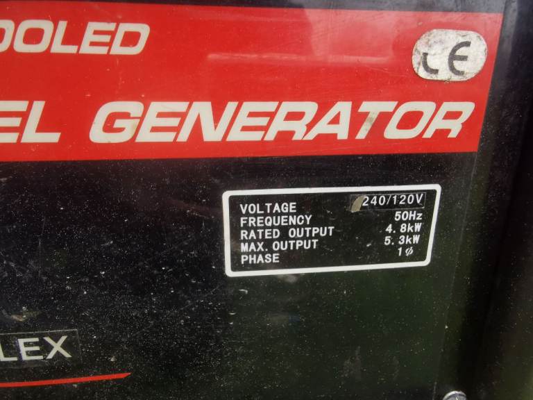 Diesel generator generator side has stopped working the engine however is absolutely fantastic starts on the bottom electronic ignition (key start) i bought this for the replacement engine for my other generator that had stopped working however as in most cases is a very long project to swap the engine over so due to a delivery coming I now need the space more than I need this generator unit sold as seen as spares or repairs the generator side is failed* the engine is fantastic i am open to very sensible offers I need the space as soon as possible.