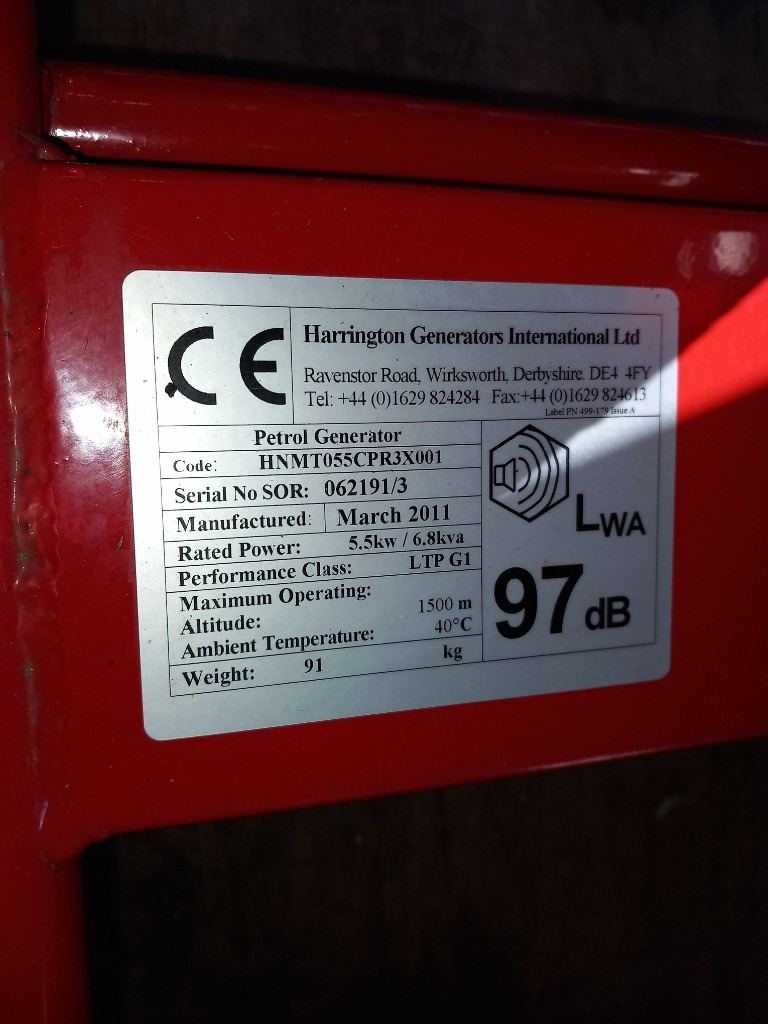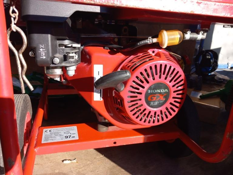 generator 110-volt double outlet, yeat 2011 mode4l Harrington LTPG1 Honda GX 390 engine, easy pull cord starting, on wheels, with four folding n carry handles(4 person lift) form the ambulance service, only ever used as a standby, so minimal use,