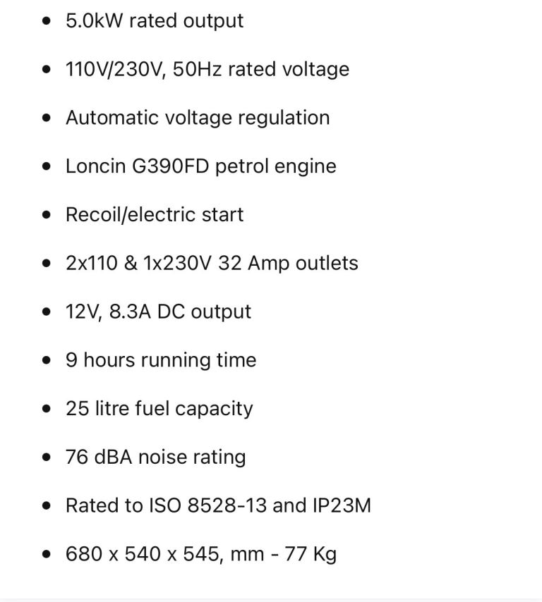 Loncin G420F petrol generator