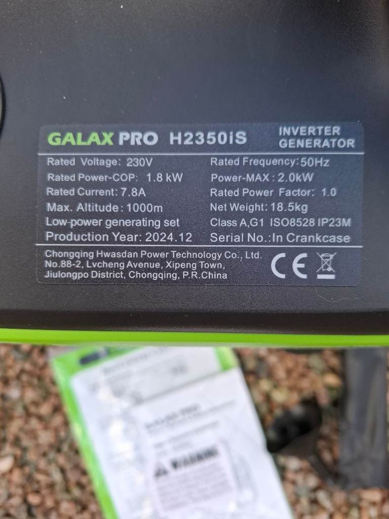 Here we have a Galax Pro H2350iS 2 k.W Inverter Generator.