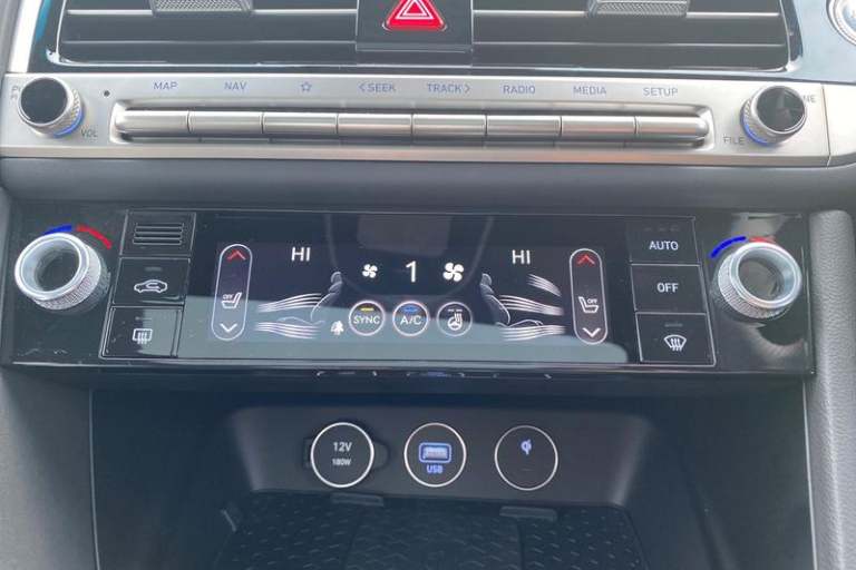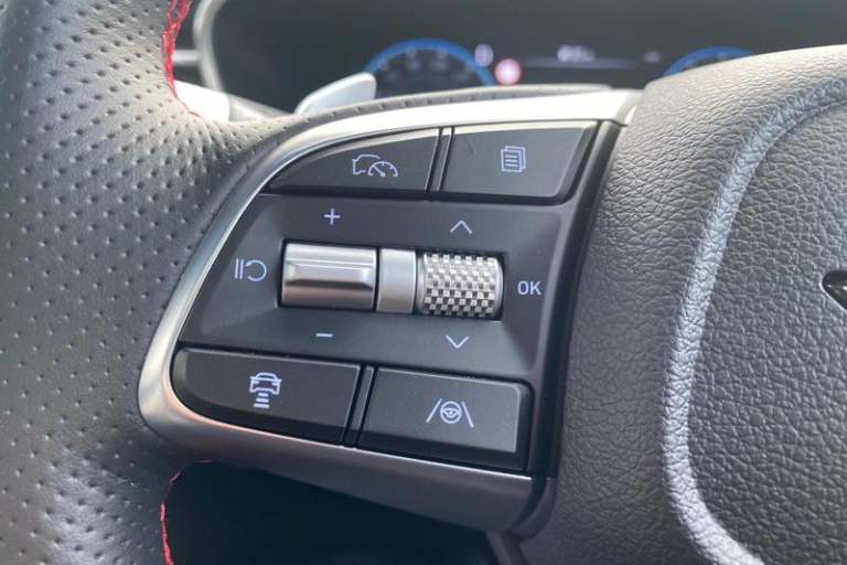Heated front seats, Limited slip differential, Luggage net, Rain sensor, Trip computer, Rear door child safety locks, Body coloured side sills, Driver's seat electric height adjustment, Electric power steering, Heated steering wheel, Battery saver, Body coloured bumpers, Body coloured door mirrors, Leather gear knob, Tyre pressure monitoring system, Height adjustable passenger seat, Luggage net with hooks, Electronic parking brake with auto hold, Laminated front side glass, Central armrest, Automatic headlights with dusk sensor, LED daytime running lights, Michelin tyres, Bluetooth connectivity with voice recognition, LED luggage compartment lighting, 3 seat bench in 2nd row, Leatherette dashboard, Lane Following Assist (LFA), Side repeater lamp in exterior mirrors, Electronically controlled suspension, LED rear combination lamp, Body coloured outside door handles, eCall emergency call system, Paddle shifter, 3x3 point rear seat belts, Automatic window defogger, Aero blade wiper, Front cup holders, Driver knee airbag, LED rear stop light, LED rear fog lamp, Wireless phone charger, Highway Driving Assist (HDA), Forward Collision Avoidance Assist Junction Turning (FCAJX), Driver and passenger seat back panel with pocket, Intelligent speed limit assist (ISLA), ABS + ESC + HAC + MCB (Multi Collision Brake), Blind spot collision avoidance assist rear (BCA-R), Sport appearance, Manual speed limit assist (MSLA), Shift by wire - E shift, Front center side airbags, Low washer fluid warning,