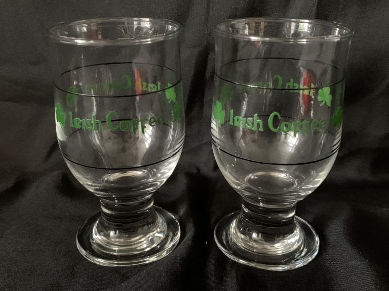 2 x Vintage Retro Irish Coffee Shamrock Glasses