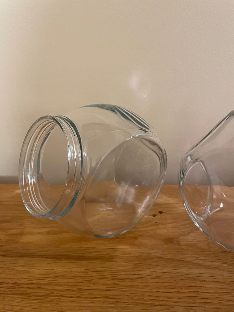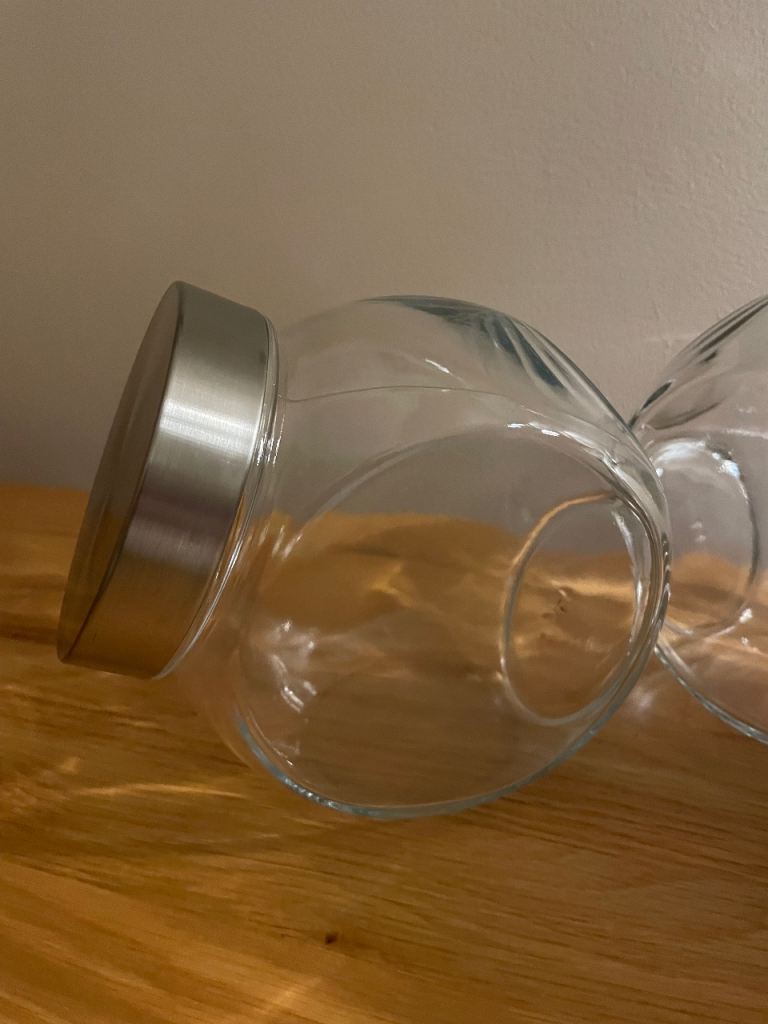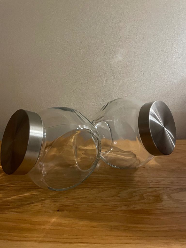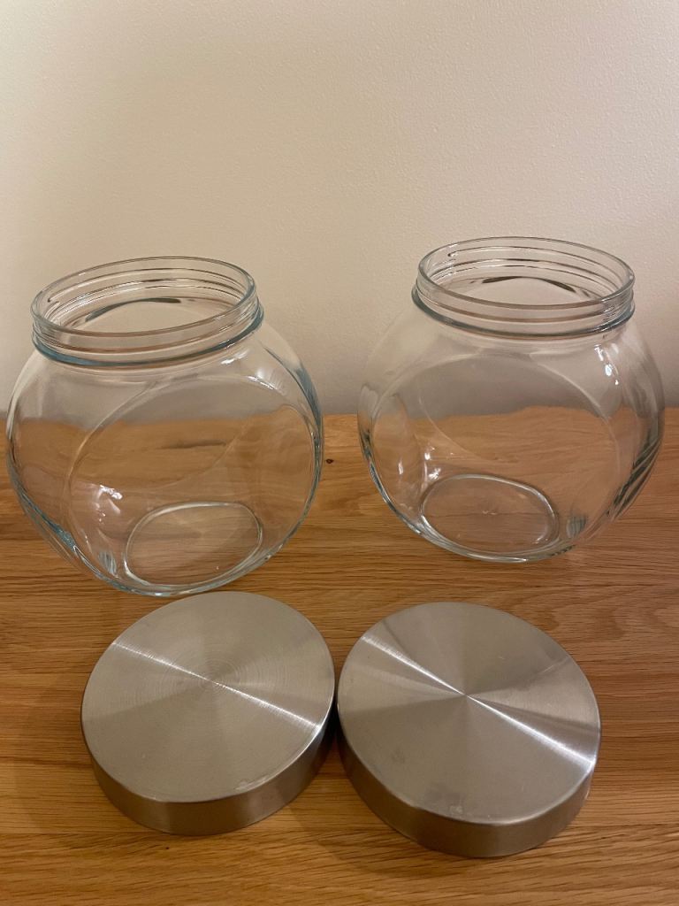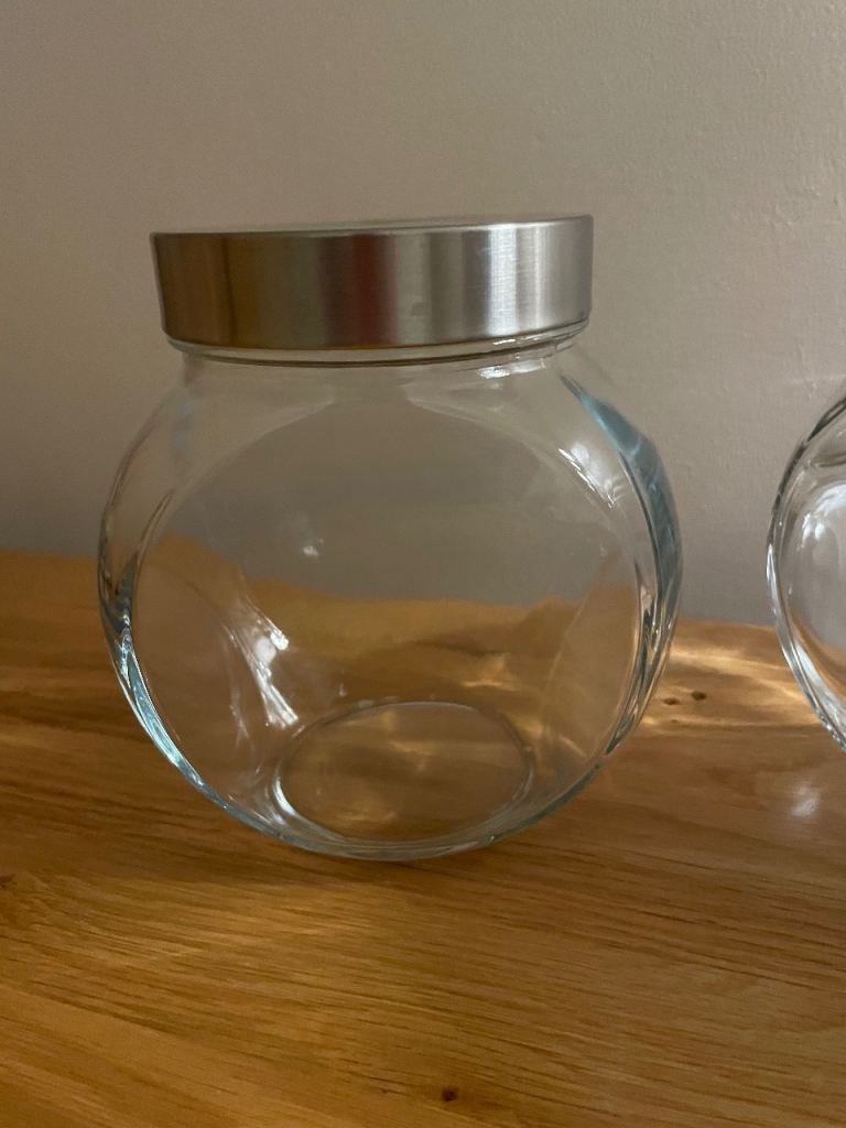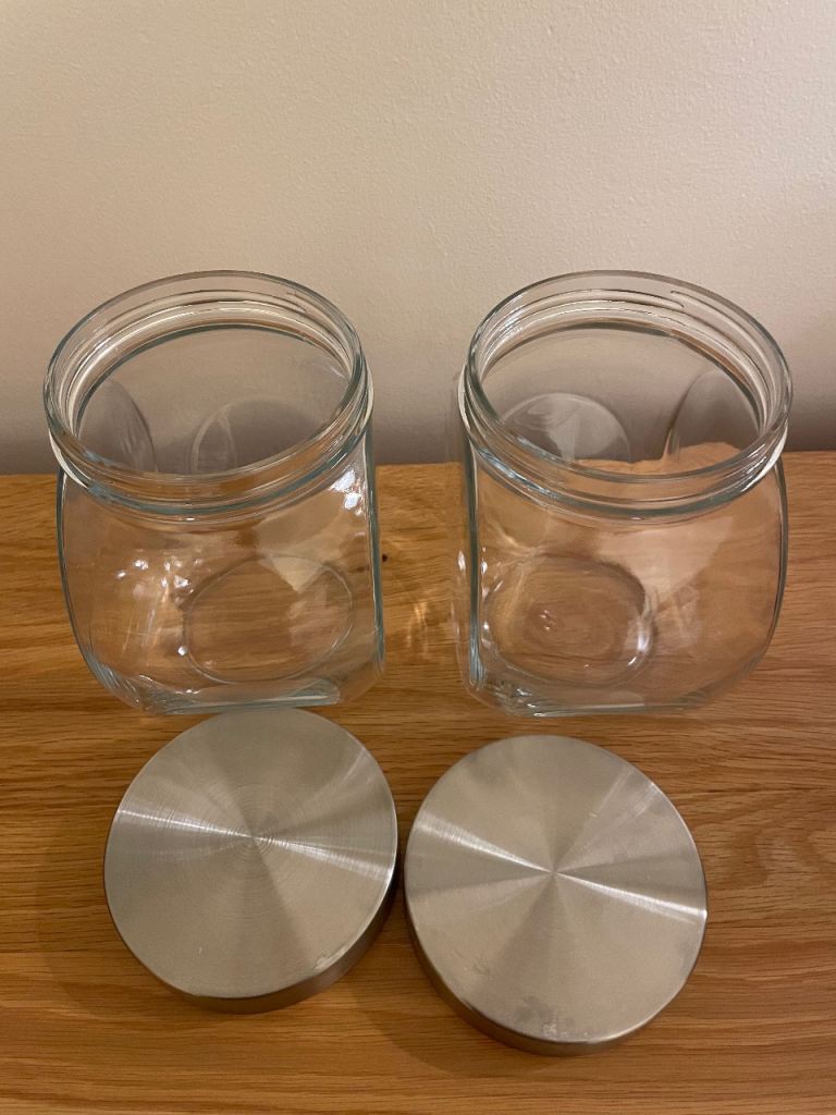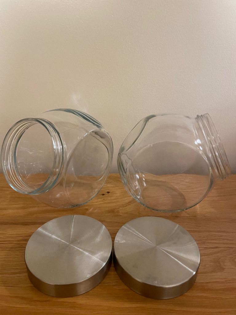 2x glass storage jar, screw on lid