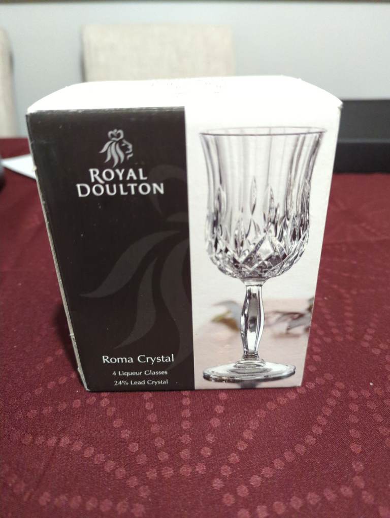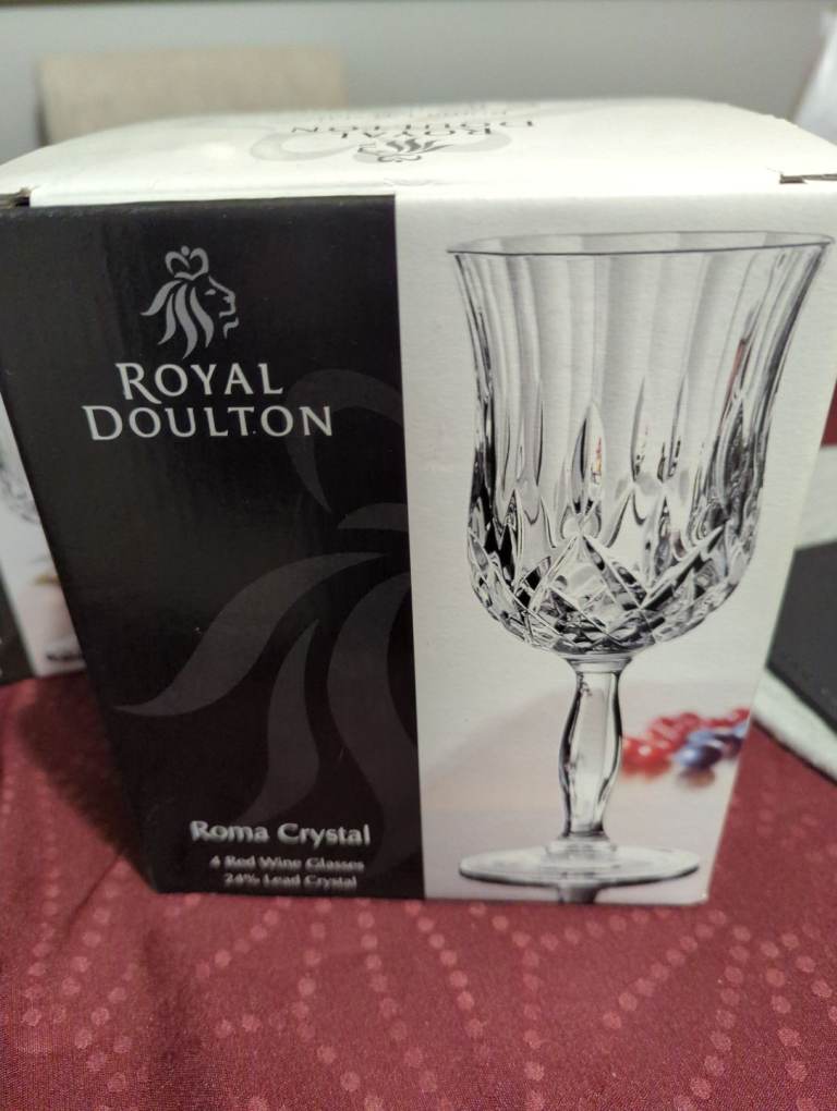 4 large pink goblet type wine glasses. Barely used. £5 for all four glasses