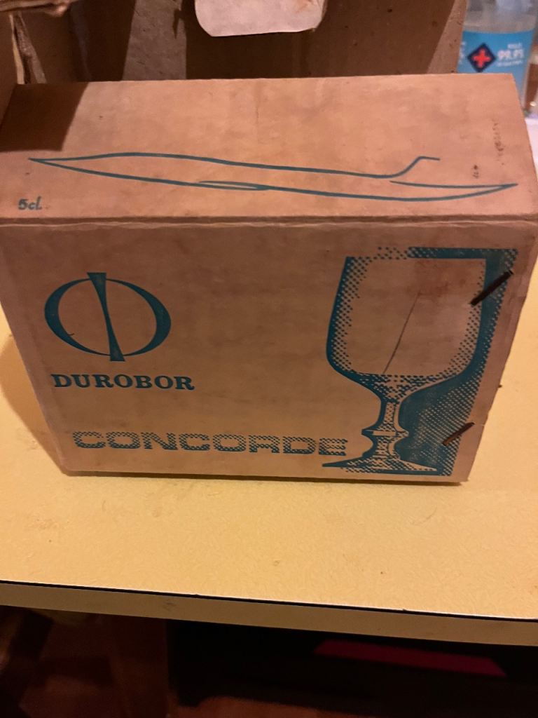 6 vintage Durobor Concorde shot glasses in original box