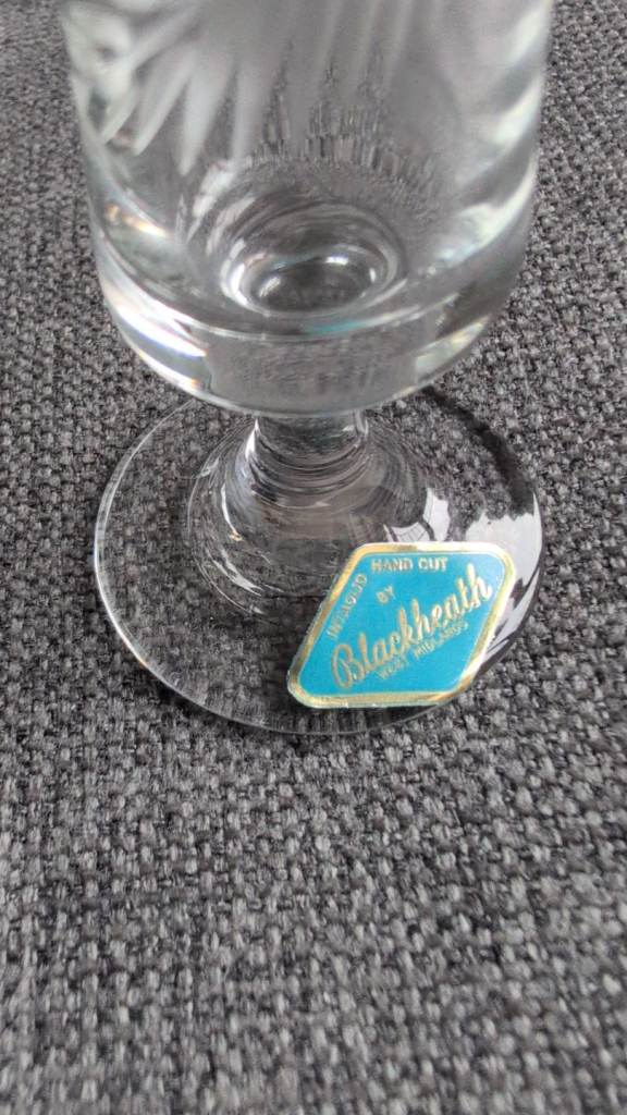 Six vintage, hand cut Blackheath port / sherry glasses. Never used, brand new with presentation box (box photo to follow).