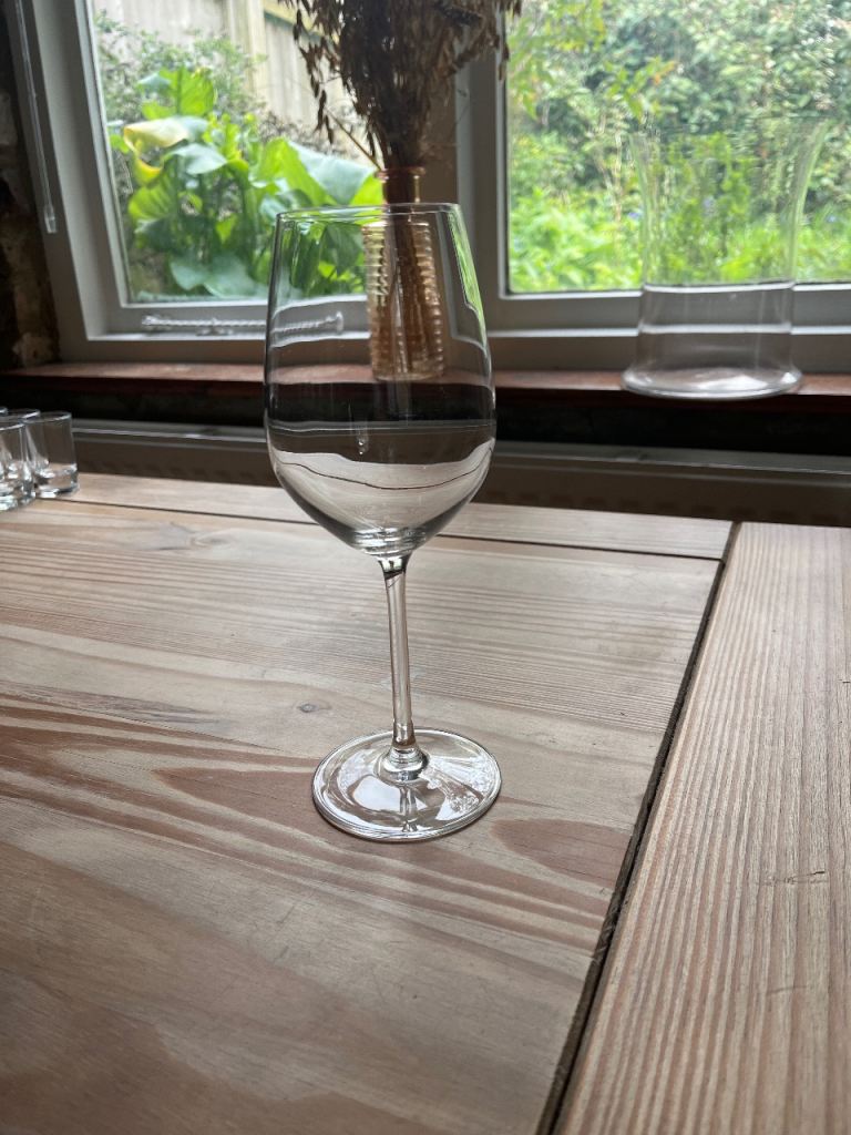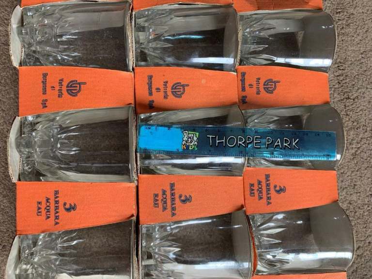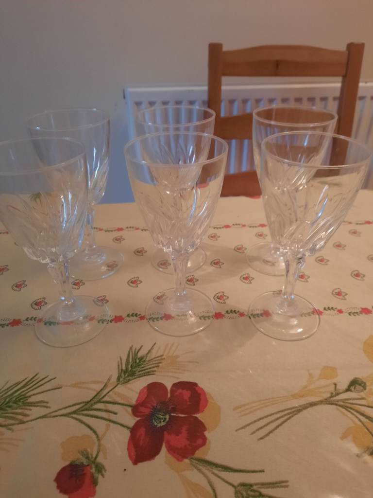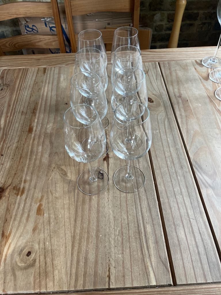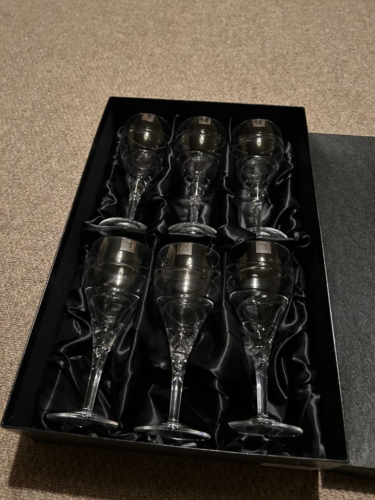 8 identical wine glasses. Was a gift but we are moving and don’t have space for them, never been used. Perfect condition.