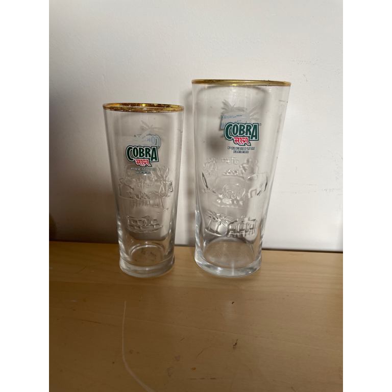 Add a touch of vintage to your bar with these Indian beer glasses from Cobra. The glasses have a capacity for a pint of your favorite lager or weissbeer and feature the iconic Cobra brand. Perfect for any collector of breweriana or for those looking to elevate their drinking experience, these pint glasses are a must-have addition to your drinkware collection.