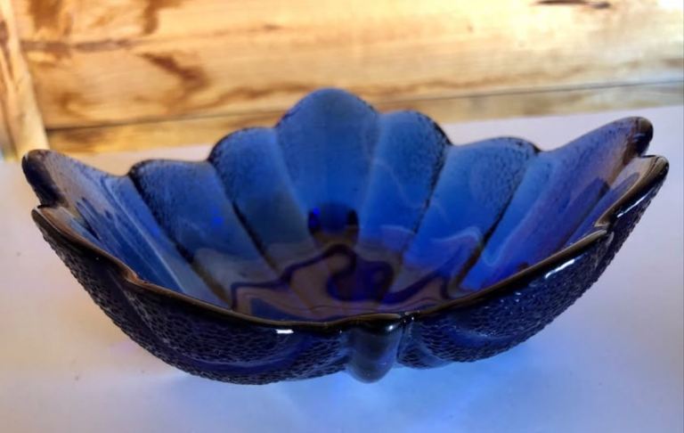 * Cobalt Blue Thick Quality Glass in Leaf Design