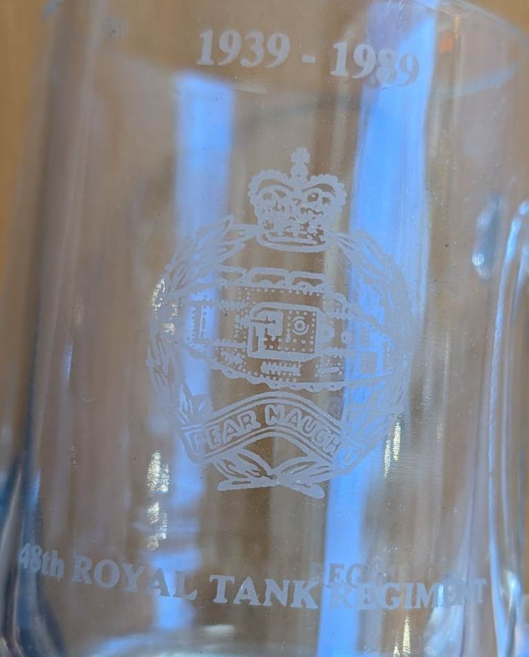 British Military Glass Anniversary Mug : 48th Royal Tank Regiment 1939 - 1989