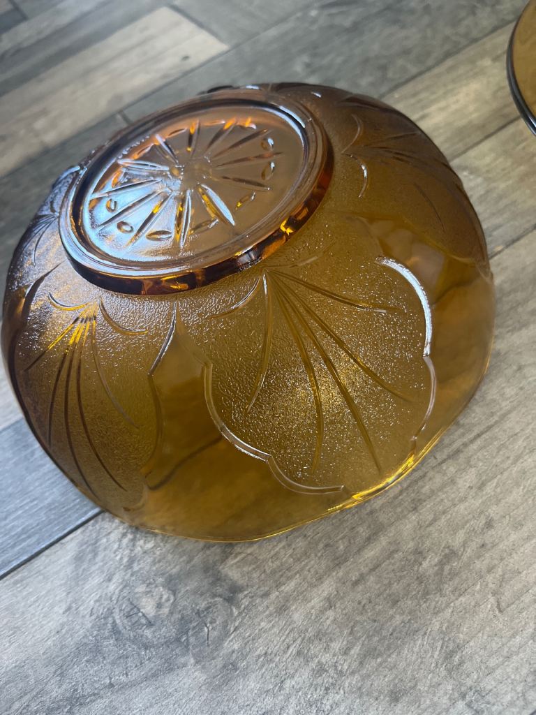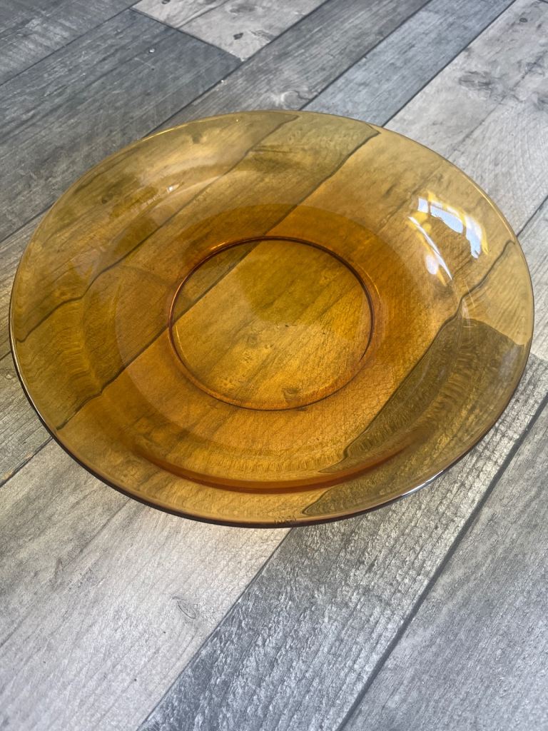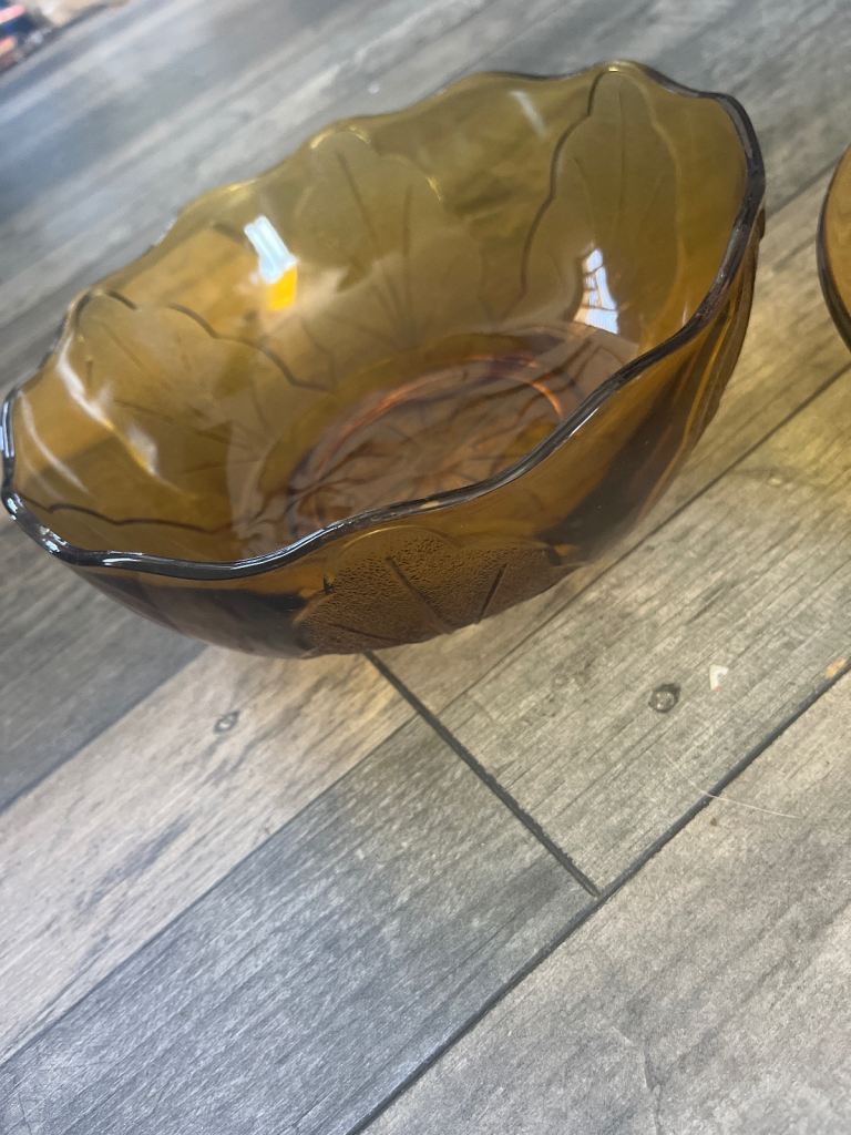 Brown glass plate and bowl