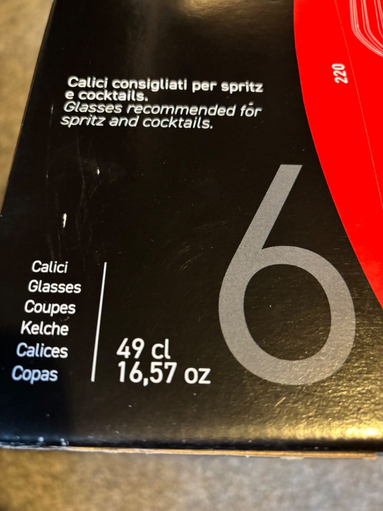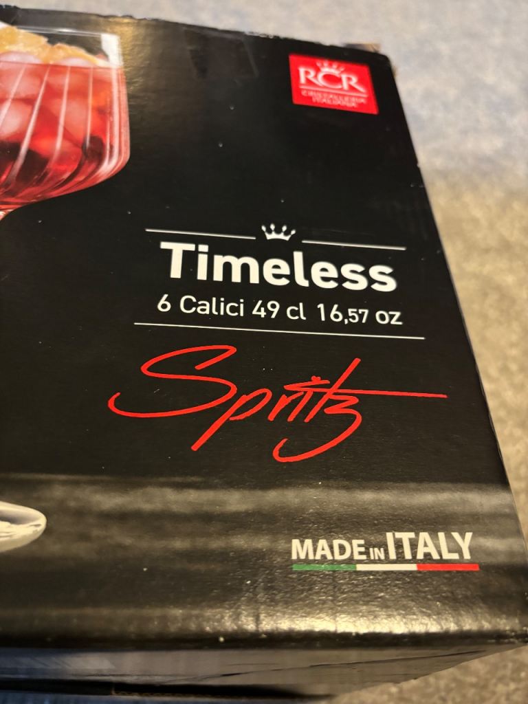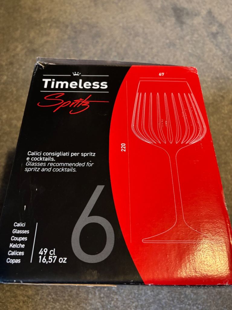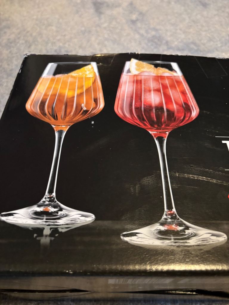 Christalleria Italians RCR Calici 49cl 16.5oz 220mm x 67mm Spritz Cocktail Glasses x 6 . Brand new in box. Can post . Collection ls17 6bp. Cheers Carl