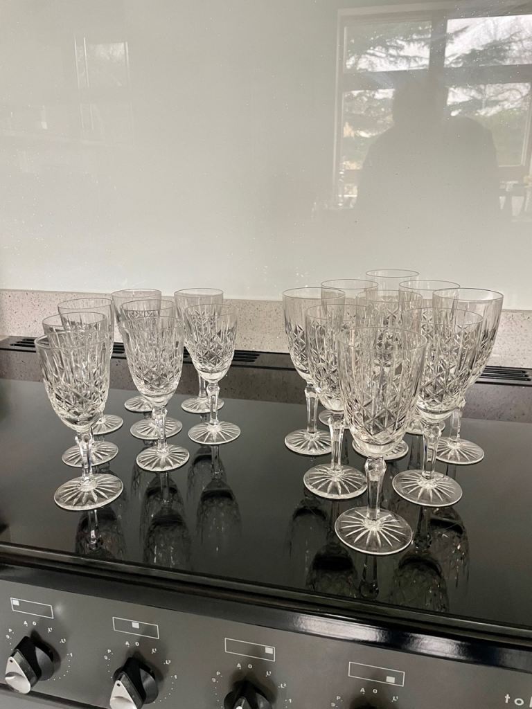 8 white wine & 9 red wine crystal glasses, wrapped up for more than 20 years!