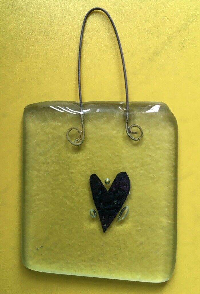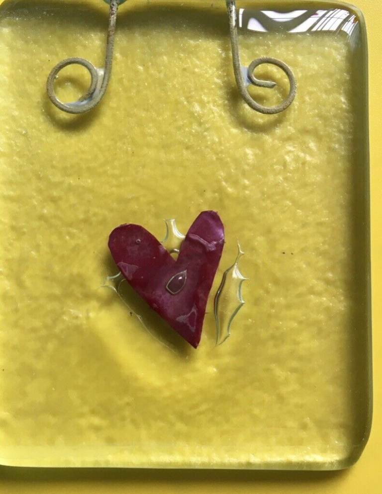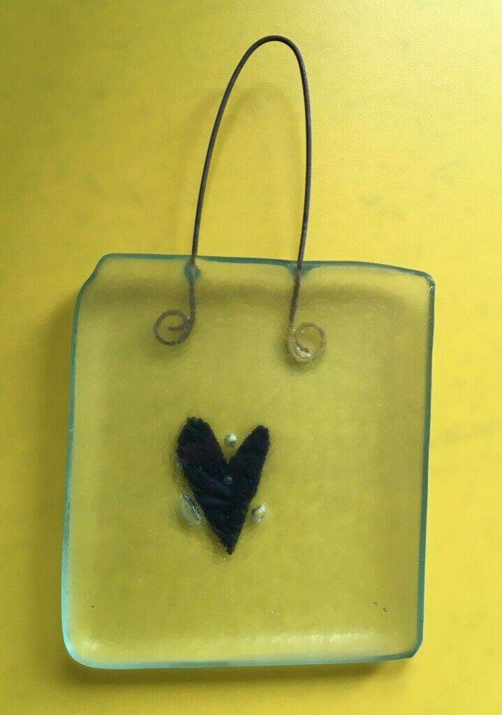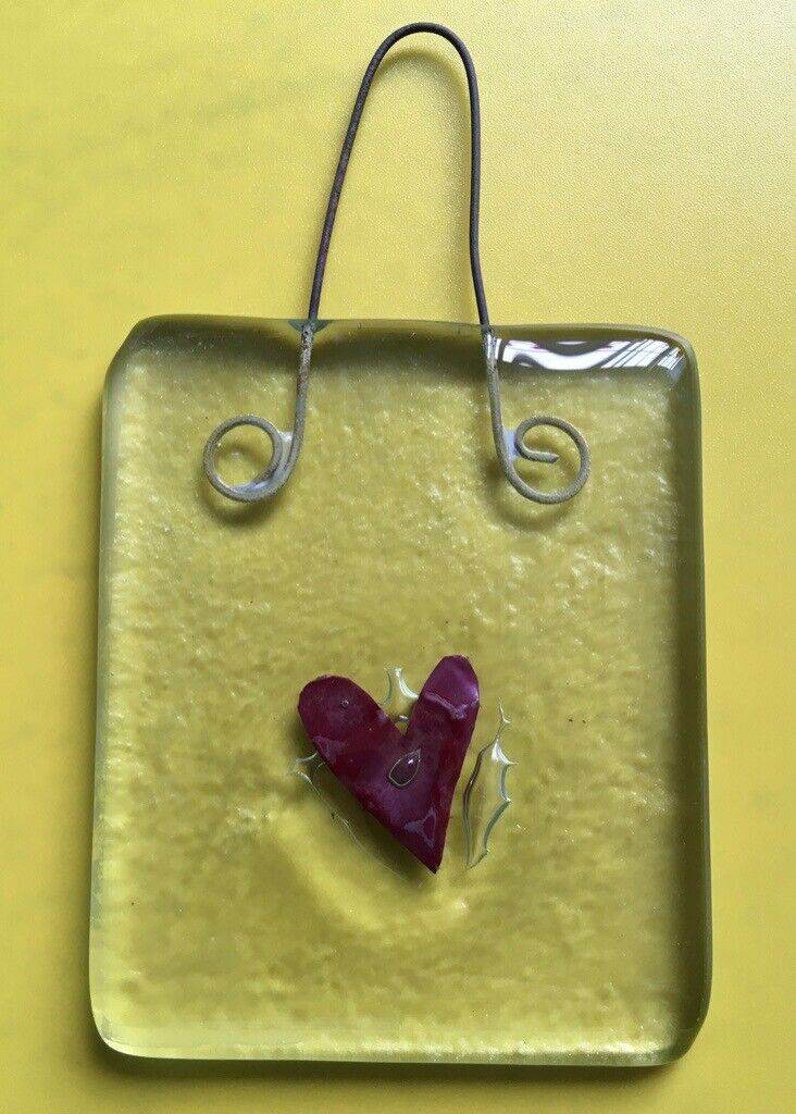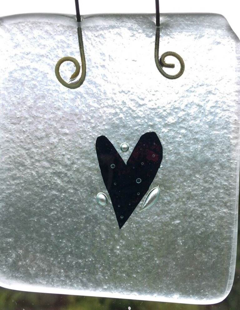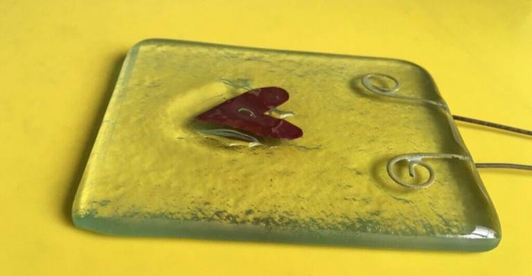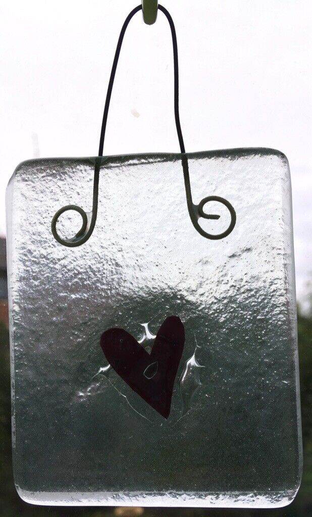 Fused Glass Sun Catcher (2 different coloured hearts, one red and one blue)