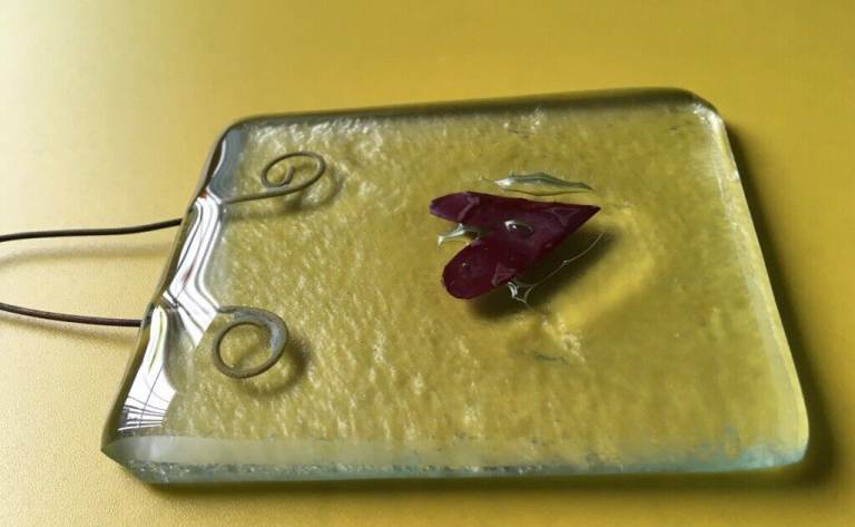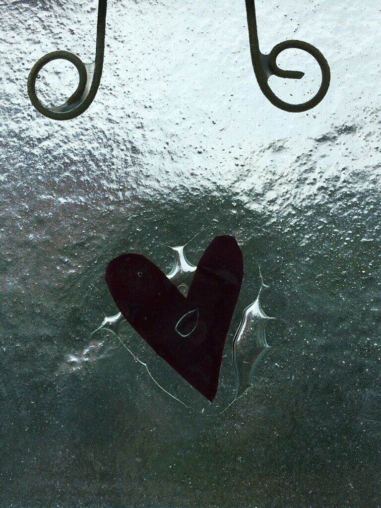 When handled, the glass is relatively smooth and even, except where the hearts are and wire hanger. Here, the glass has a lovely uneven feel and texture.