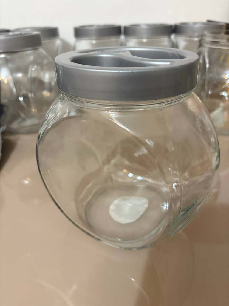Large clear glass jars with lid. Excellent condition 17 available. Collection only from PR1