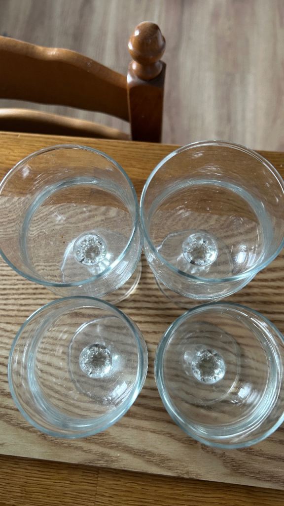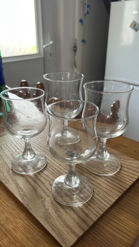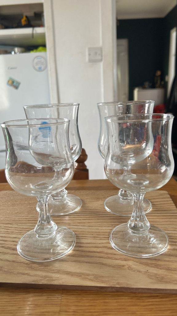 Set of 4 glasses (2 large and 2 medium) for cherry/liqueur in good condition.Pick up from G73.
