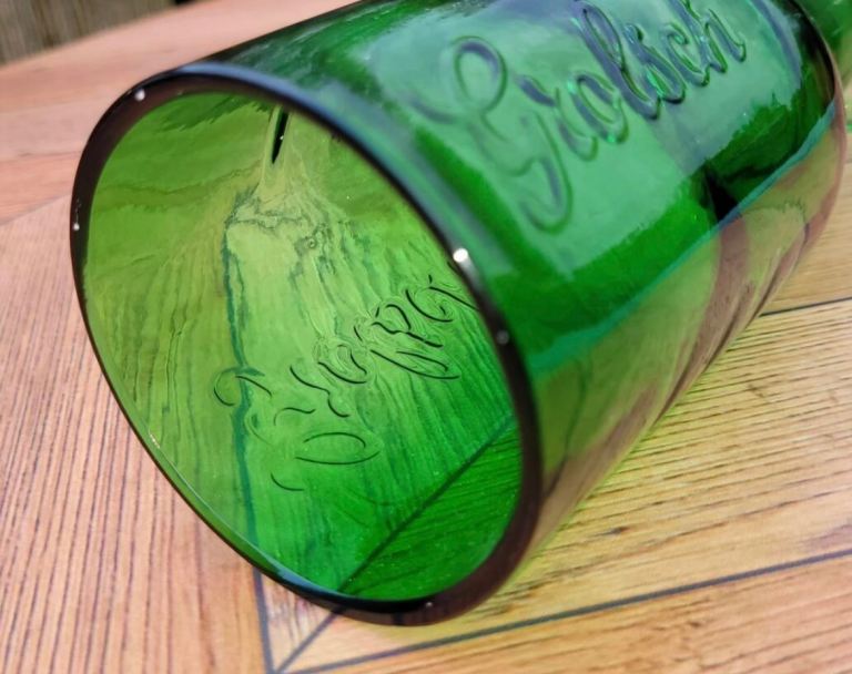 Enjoy your favourite beer in style with these unique Grolsch beer glasses. Crafted from recycled green Grolsch beer bottles, these glasses are a sustainable choice for any beer lover. The distinctive design and half pint size make them perfect for enjoying lagers and Weissbiers.