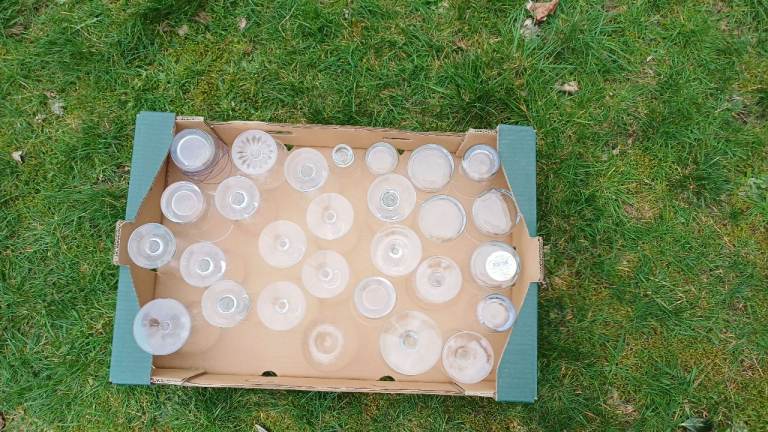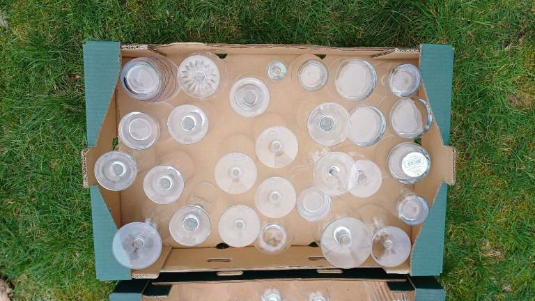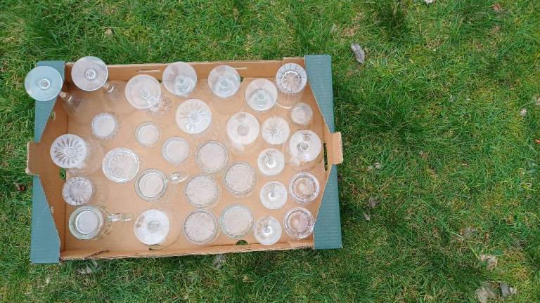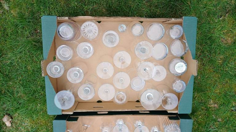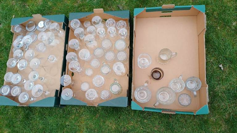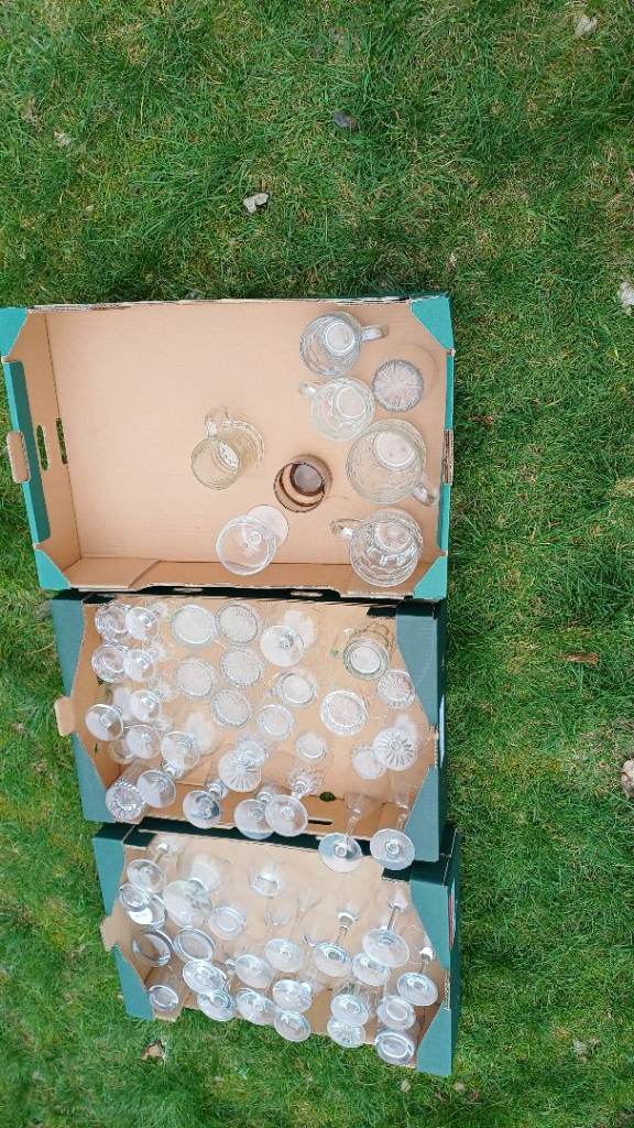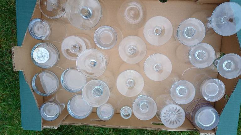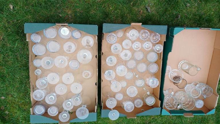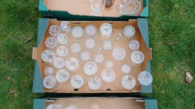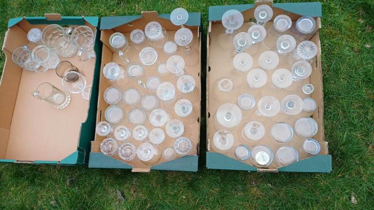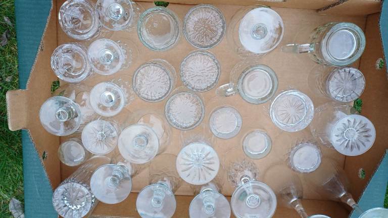 JOB LOT 67 DRINKING GLASSES GREAT LOT. 31 normal glasses 36 cut glasses. Total 67. Bargain for lot. Wine glasses , Beer glasses , brandy glasses , sherry glasses. Some sets some 4 glass sets. Fantastic cut glasses. £17.00 For the lot.