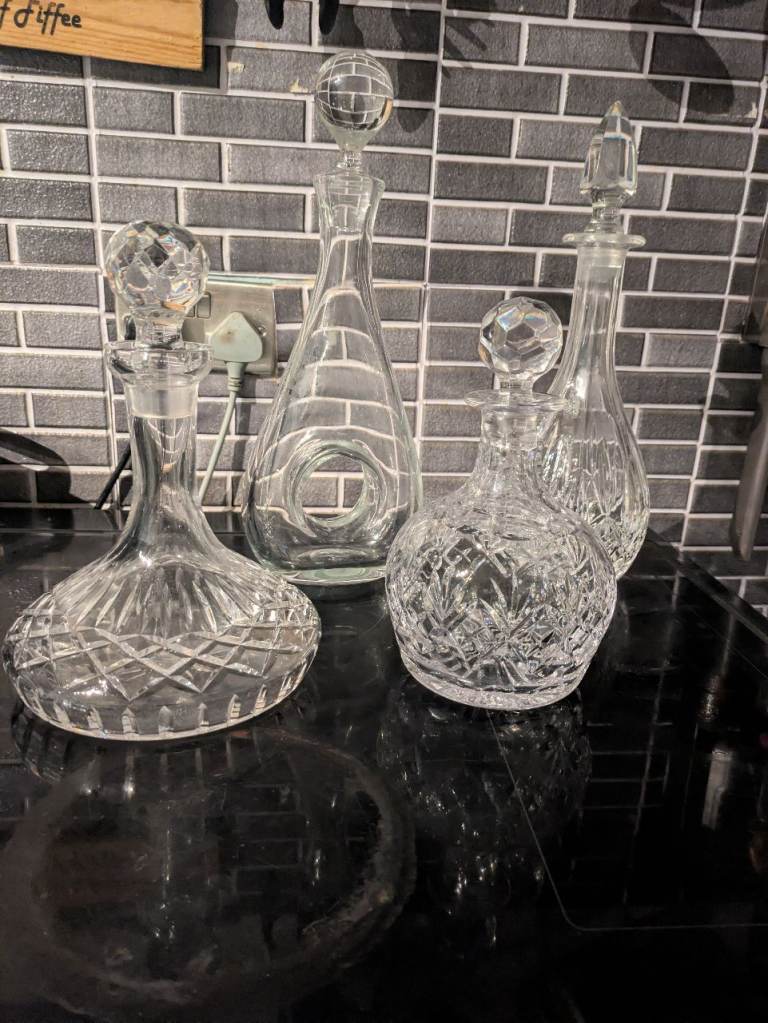 Job lot of different decanters in excellent condition. Willing to sell separately so just message me for an individual price on each. A few of them are really heavy and all have their own stopper lids. Reluctant to sell but have nowhere for them anymore.