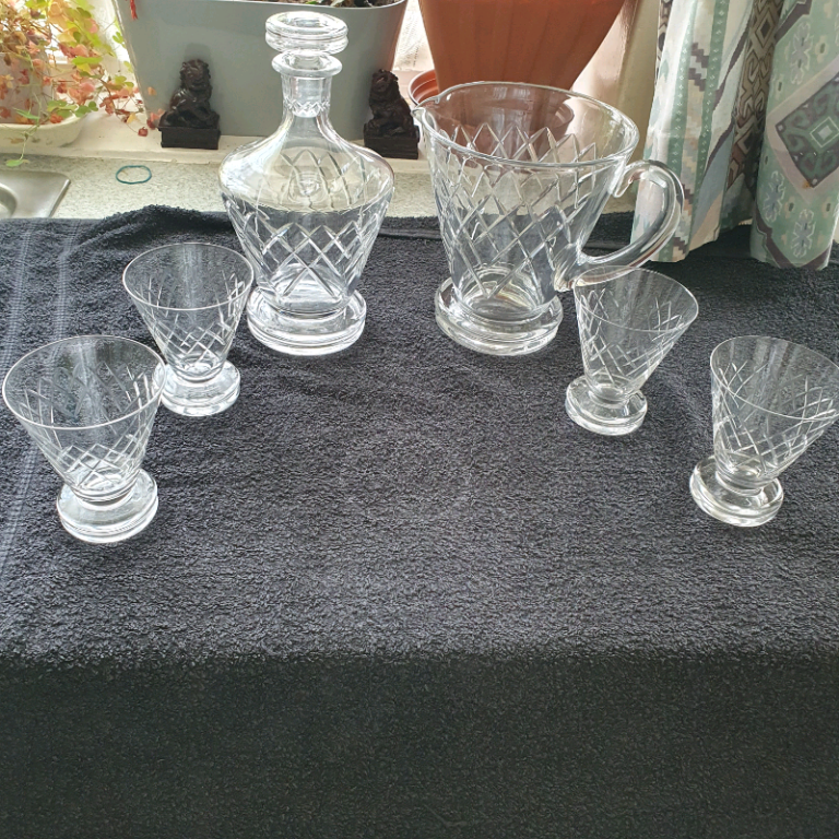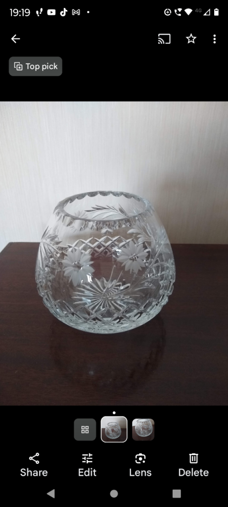 A large, clear glass item, looks like it could be a vase or an oversized brandy snifter.