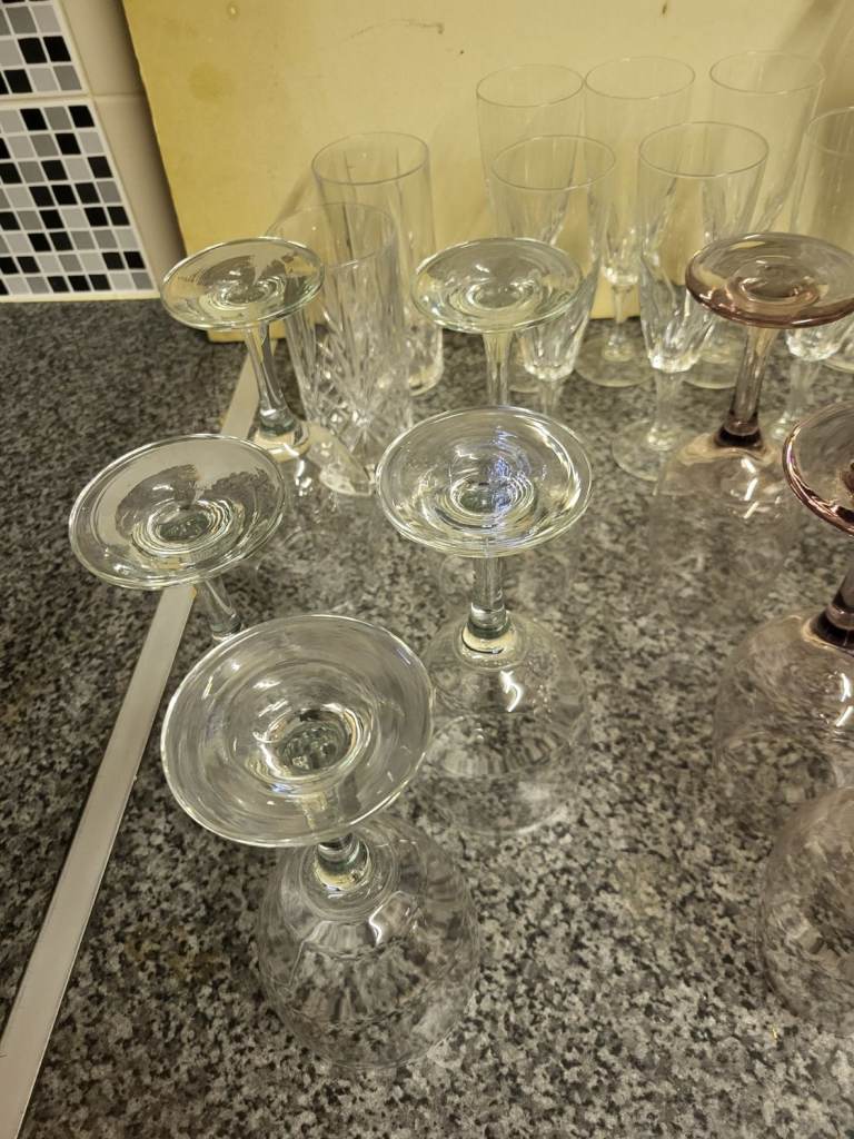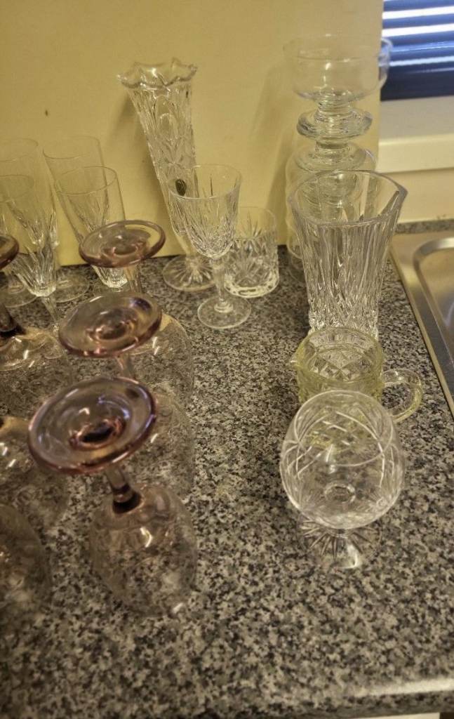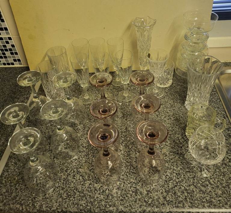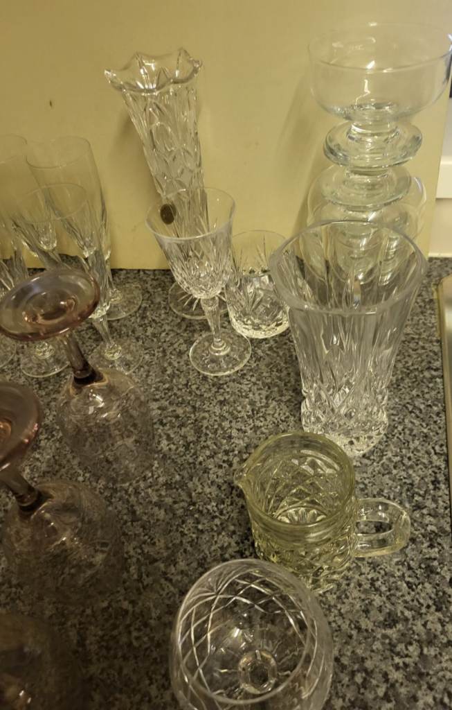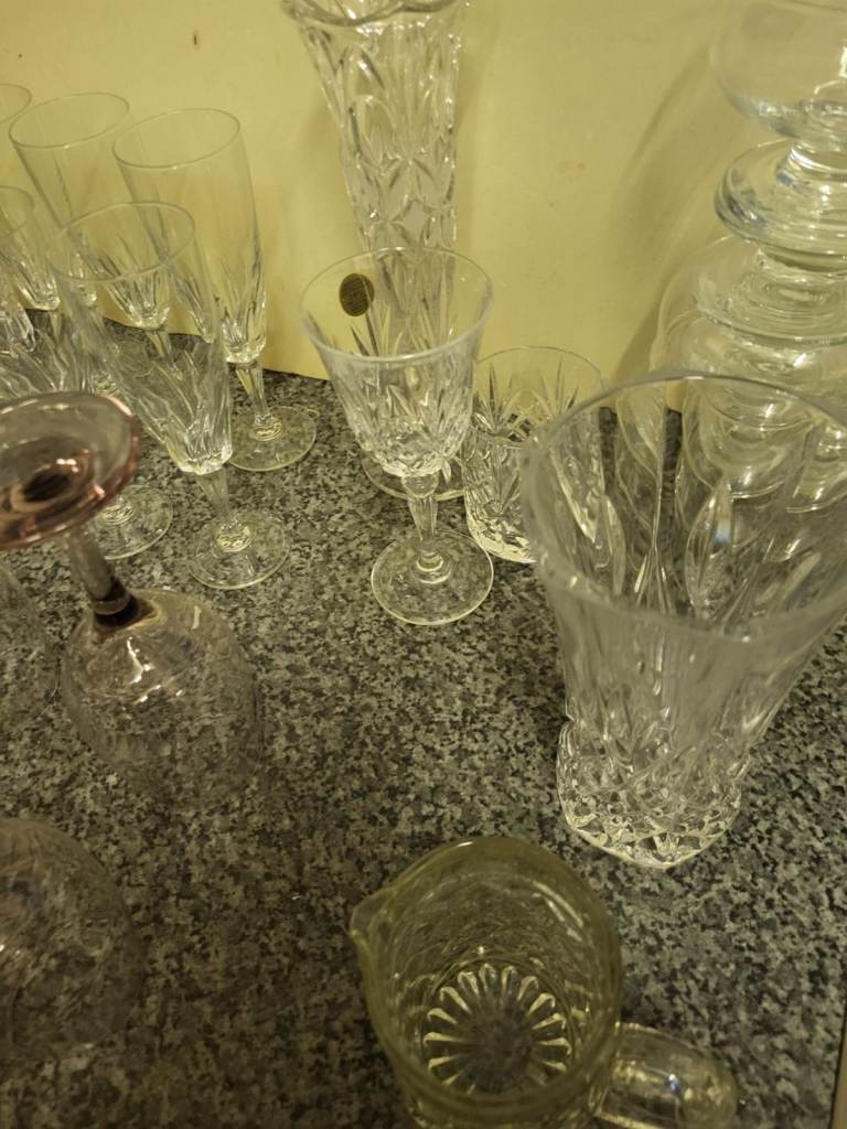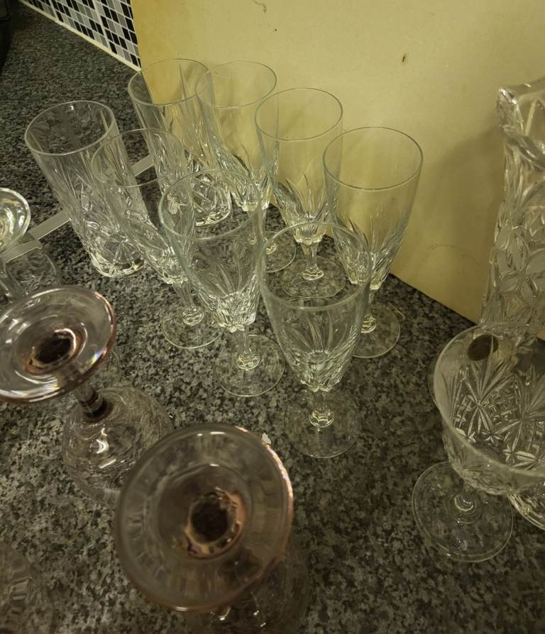 Posting for 1+ monthsLarge Cut Glass & Crystal Bundle – Wine Glasses, Champagne Flutes, Vase & More
