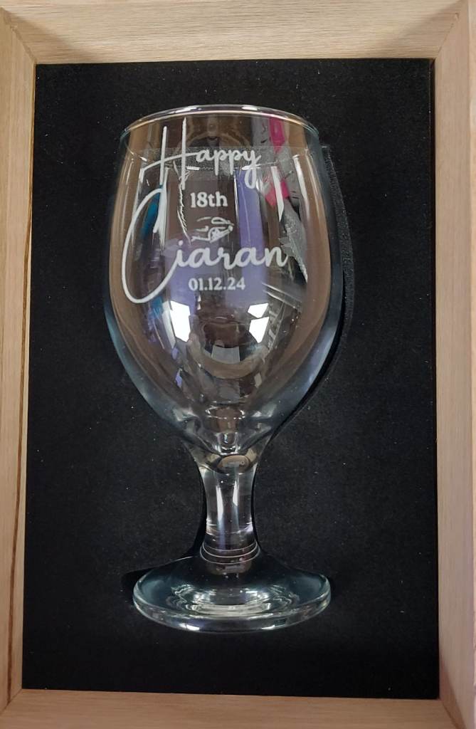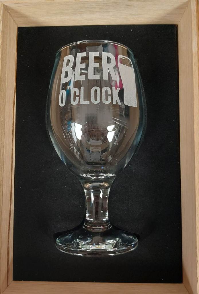 Laser Engraved Personalised Beer Glass in Luxury Oak Gift Box