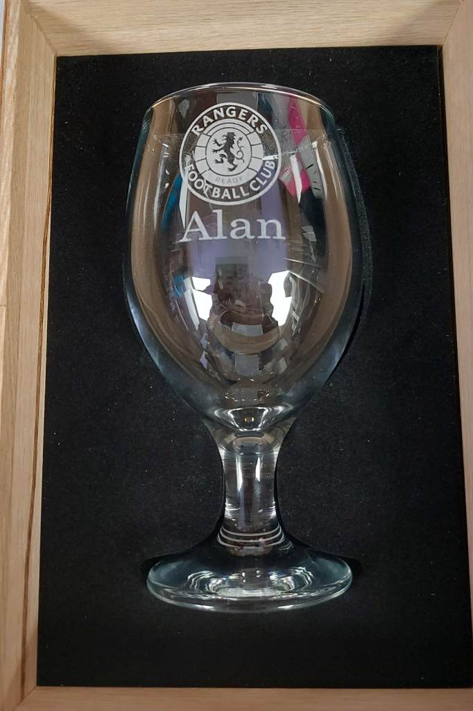 400ml Beer Glass, with Laser Engraved Design, hundreds of designs to choose from or can be personalised / bespoke in a luxury lined solid oak gift box.