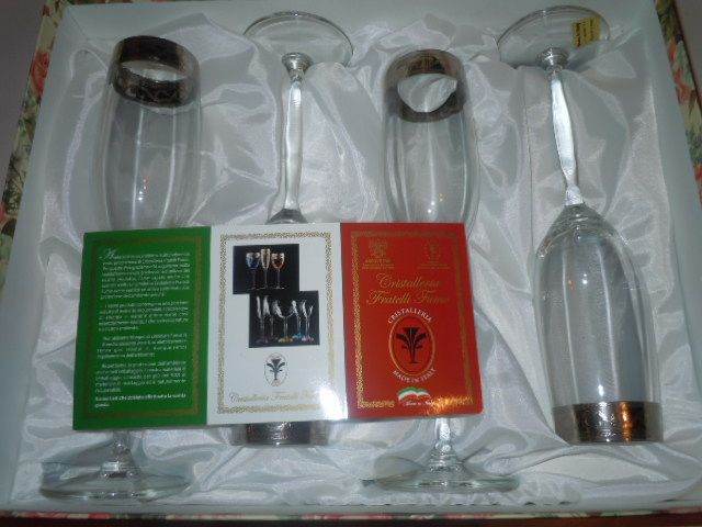 NEW Cristalleria Silver Decorated Champagne glasses