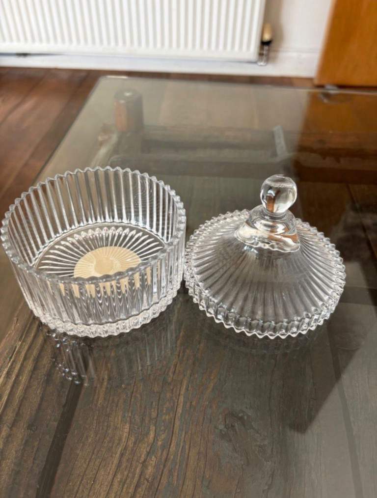 New Glass Trinket With Lid Jewellery Box Money Sugar Pot Wedding Present.