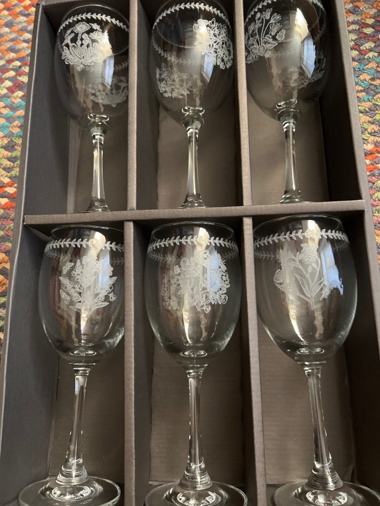 Posting for 6+ yearsPortmeirion Botanic Garden red wine glasses