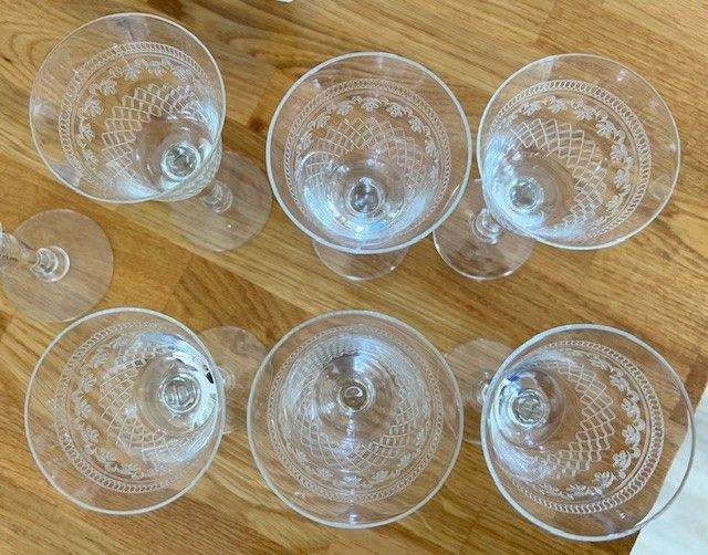 Posting for under a monthLovely set of 6 rare vintage wine glasses