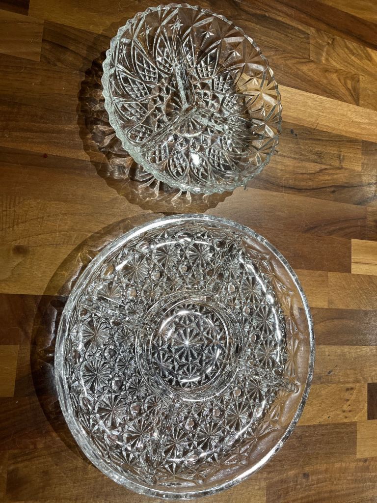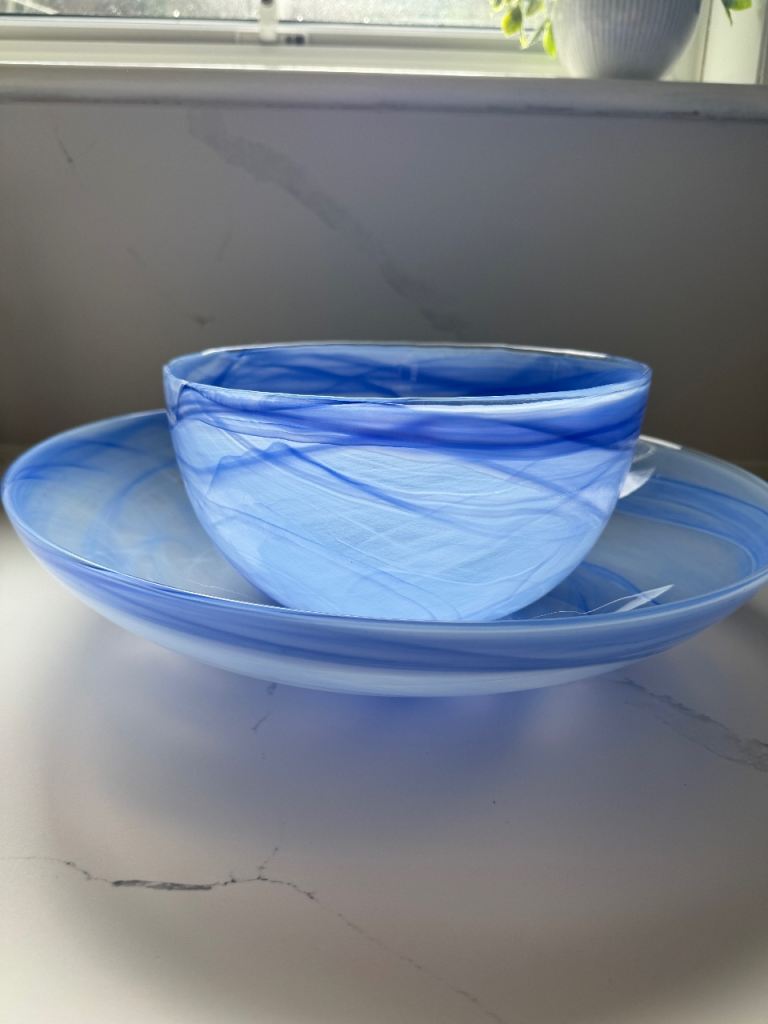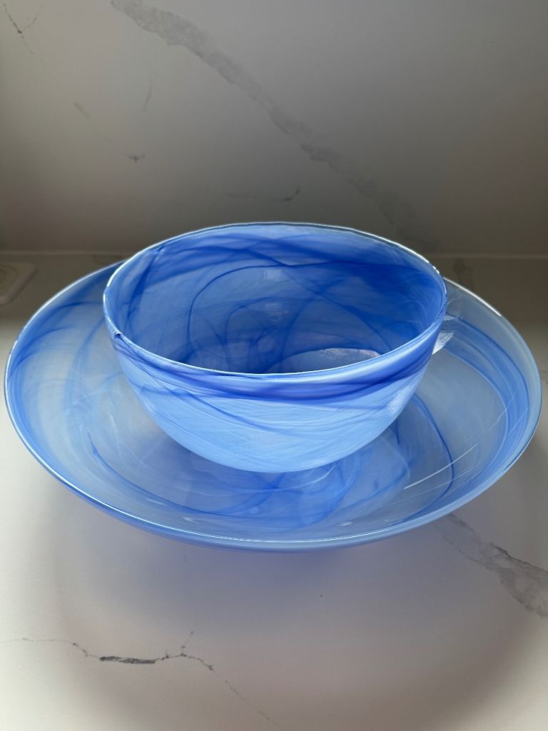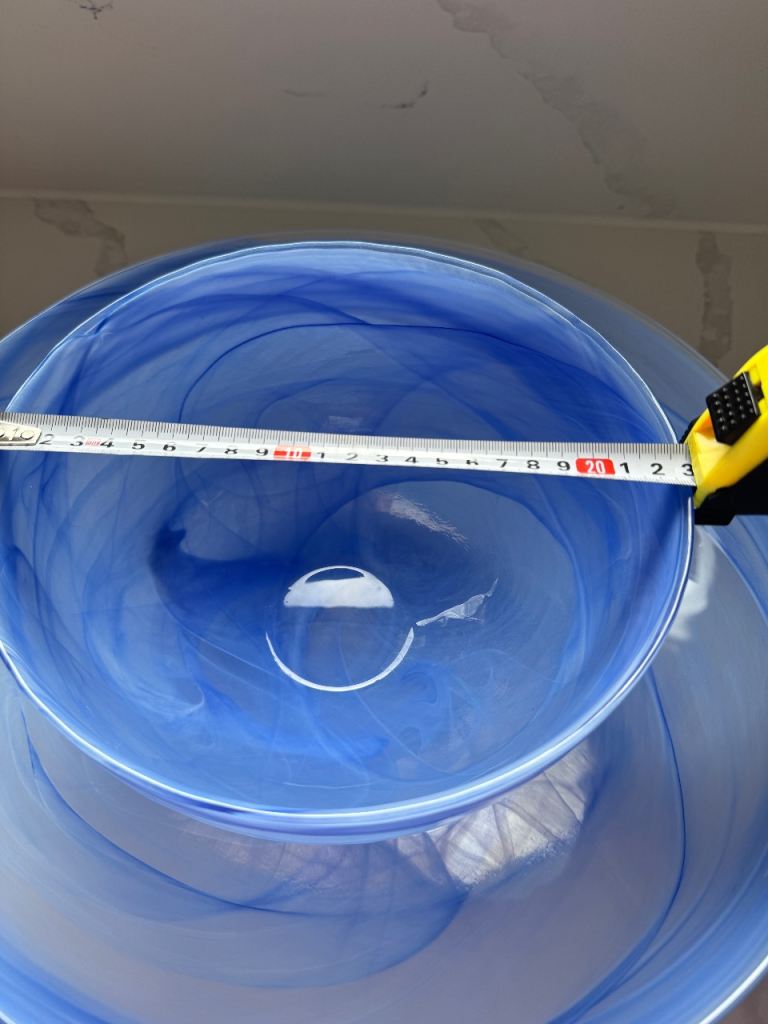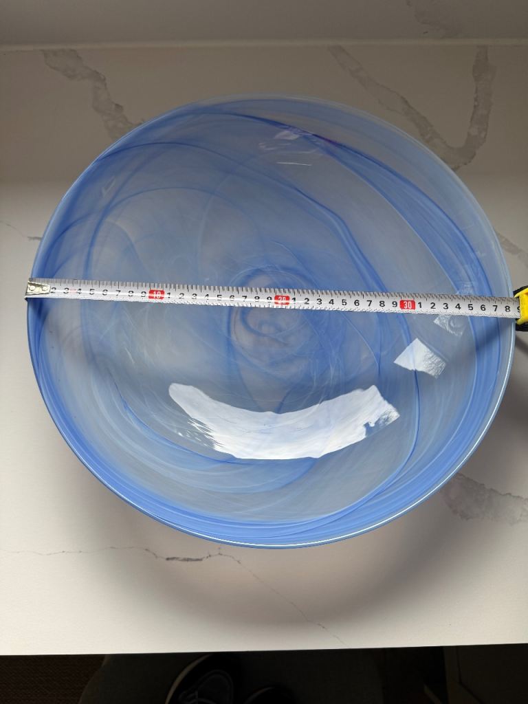 Beautiful set of two blue swirl glass bowls. The largest is 38.5cms and the smaller one is 23cms.