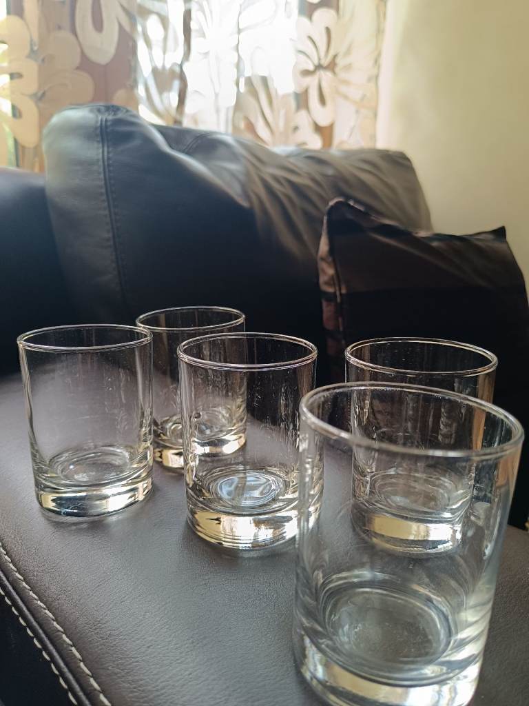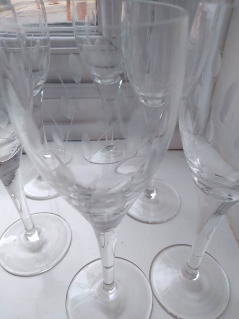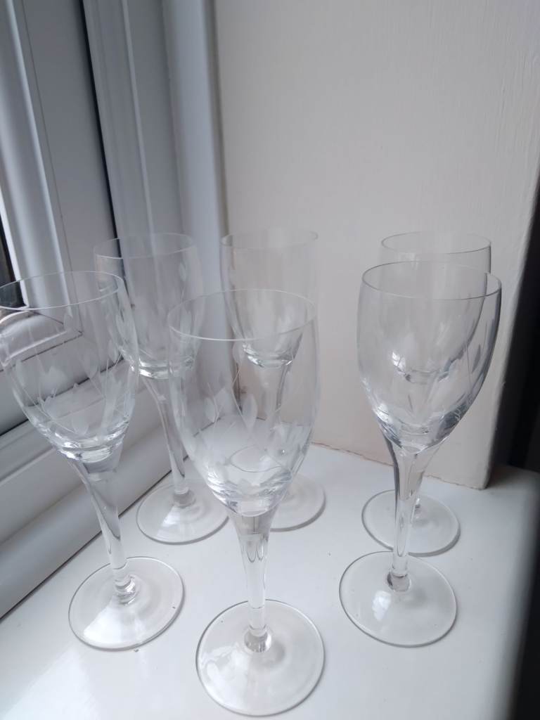 6 sherry glasses (Bohemian) very fine with leaf pattern..worth a look for a gift ...£8