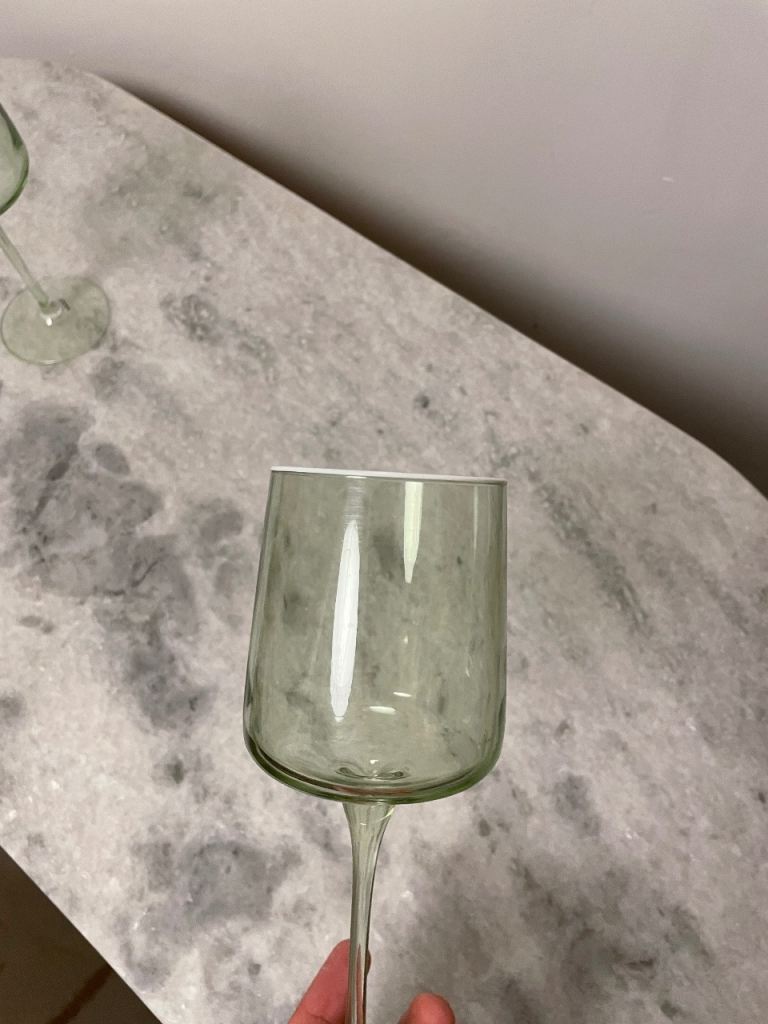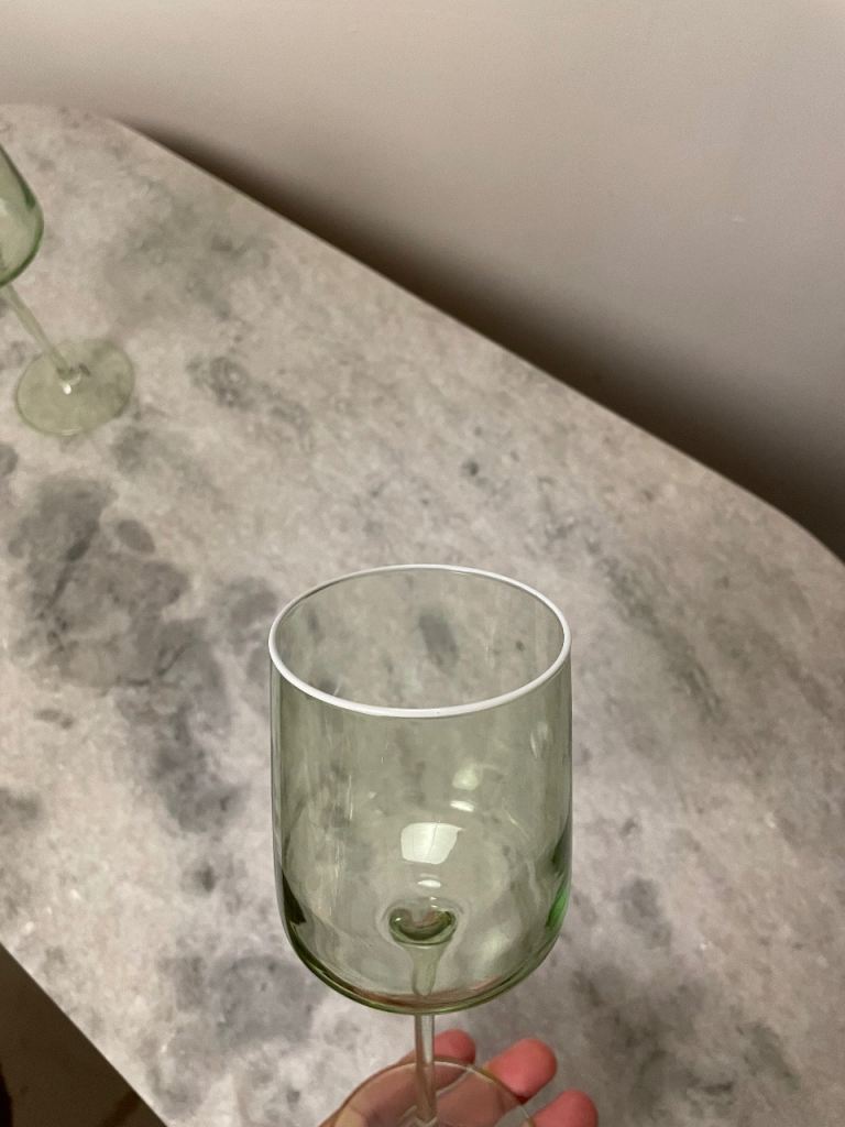 Posting for under a monthTinted Green Wine Glasses