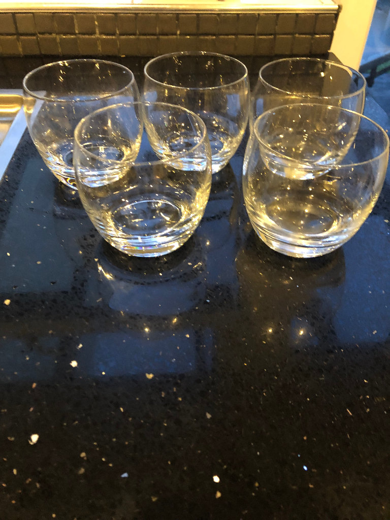 5 whisky glasses and 5 wine glasses very good quality glasses