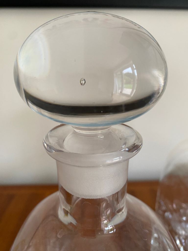 For sale as this pair of large Dartington 'Ripple' handblown square glass decanters.