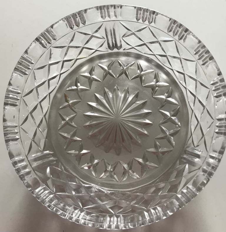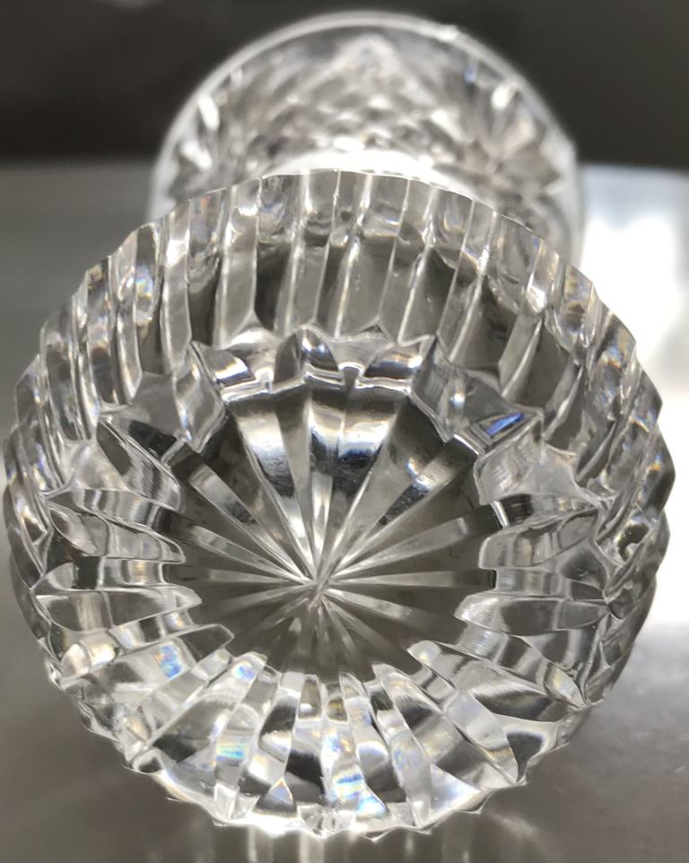 Various pieces of Tyrone crystal….a salad/fruit bowl 18cms x 6 cms, a small bell 10 cms high, a small bowl/cream dish 10 cms x 5 cms x 35 cms, a small clock 10 cms x 2 cms and 2 small whiskey glasses.