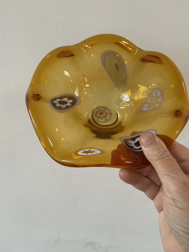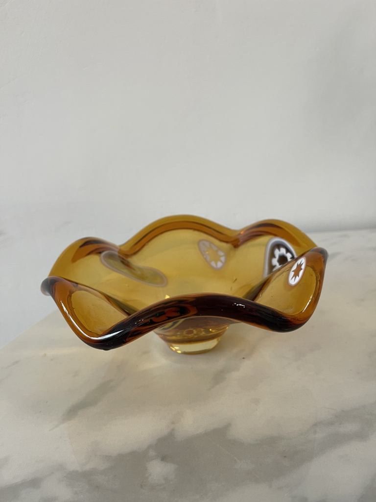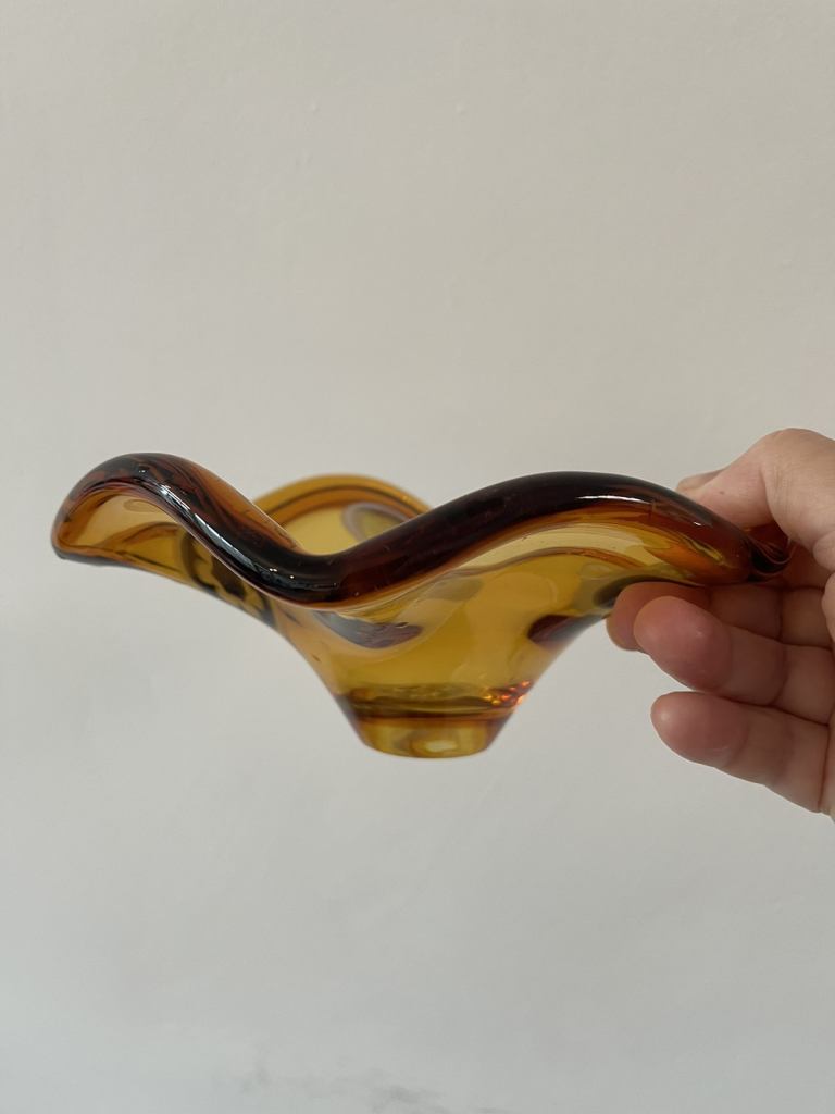 Vintage mid century amber glass bowl hand blown Art glass bowl. Art work
