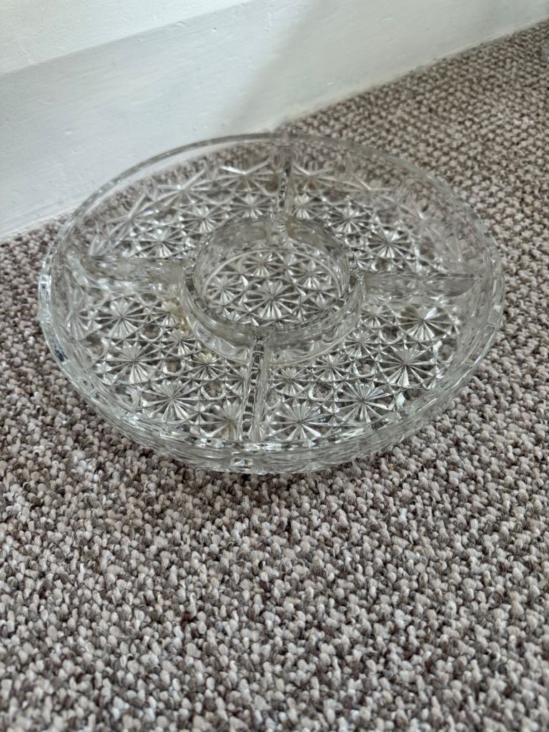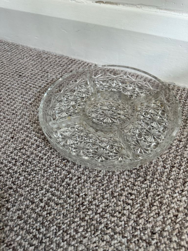 Vintage crudités buffet party cut glass platter dish 5 sections