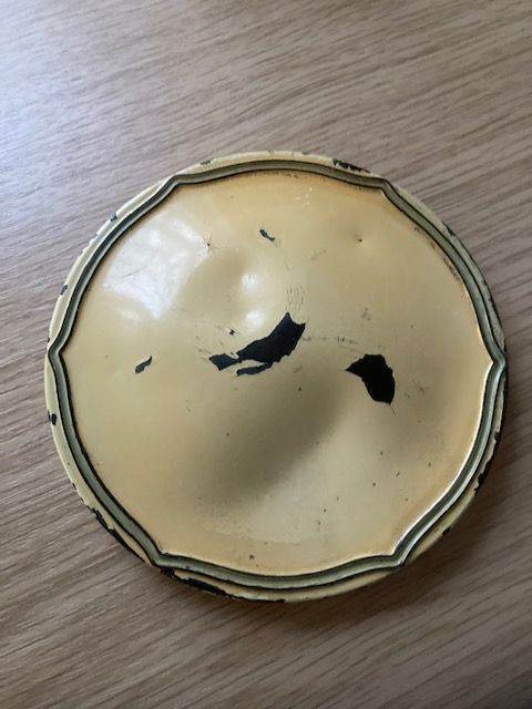 No chips or cracks but the top is a little marked and a small dent (see photo)