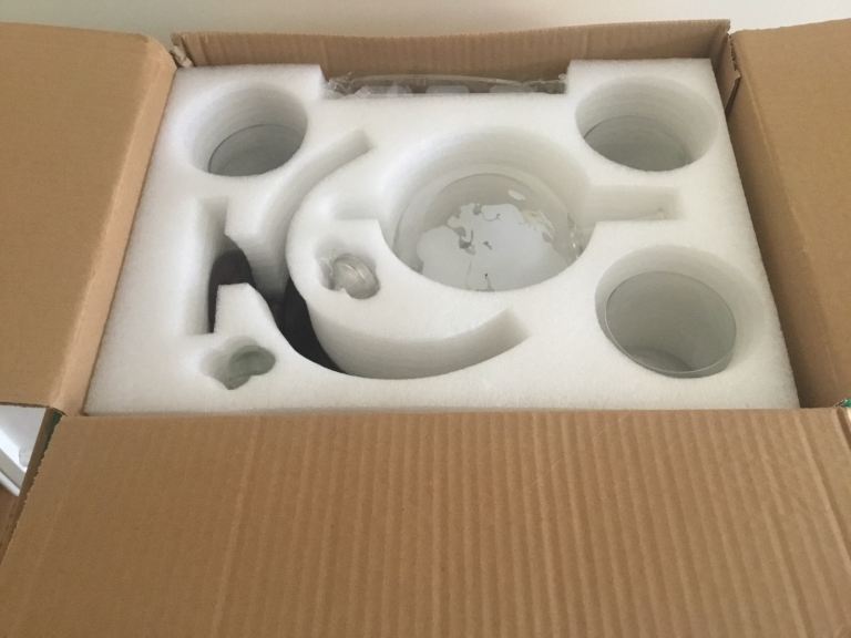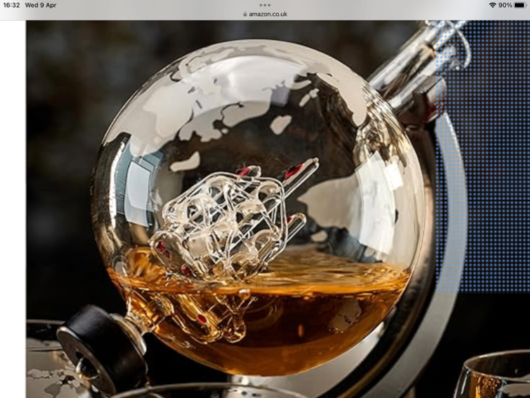 Decanter set items include decanter approximately 900ml, 3 glasses, 6 whiskey stones, tongs and a mini funnel. In original packaging never been used.only taken out of box for photos