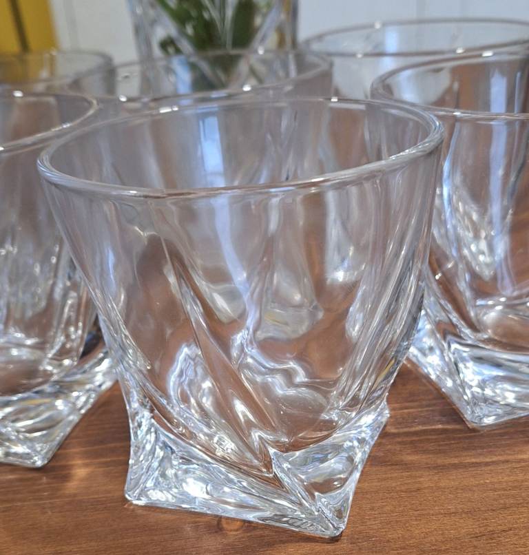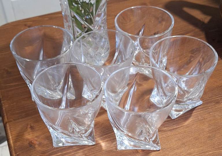 Pick up from Hartley, Plymouth, near Golden Hind pub. New Whisky Twist Style Tumblers. No Offers as already reduced. NEVER USED. Bought them as a gift for my son without realizing he had given up alcohol LOL. Good weight to them. Immaculate condition. DIAMANTE Quadro Whisky Tumblers or Short Drinks Glasses Made from Premium Lead Free Crystal - Set of 6. From smoke free home. Unable to deliver.