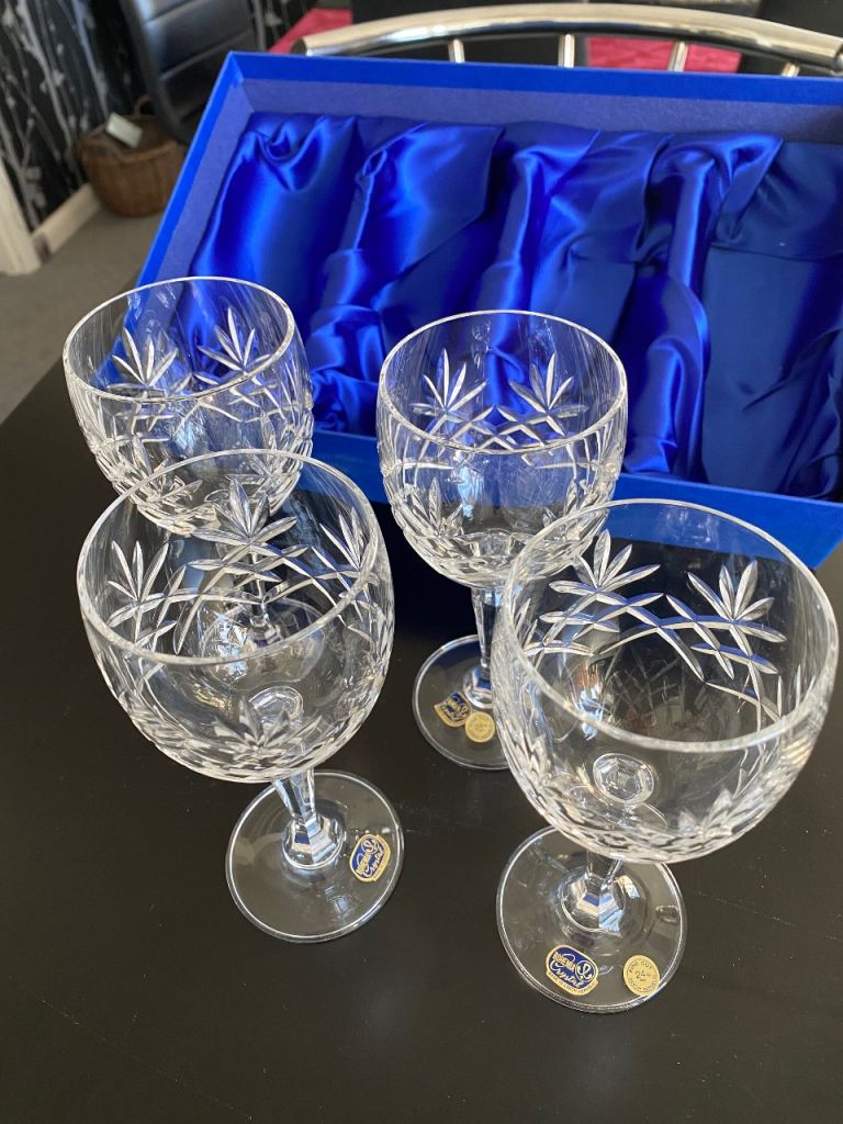 Bohemia Fine Cut Lead Wine glasses, beautifully engraved pattern glasses that will compliment a well laid dining table.