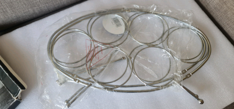 In new condition Chrome oval shape, wine bottle Rack,stores 6 bottles, looks beautiful, collection from little lever, bolton, please see my other items, thank you