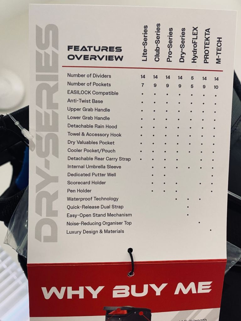 The 14 way divider top and 14 individual full length club dividers offer excellent club organisation and functionality.