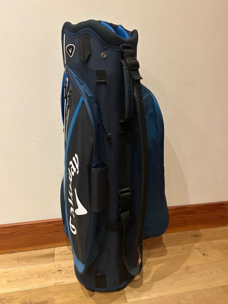 This Callaway X Series golf bag is a stylish piece of equipment. Its distinctive blue/navy/white colours make it look the part. Made by the trusted brand of Callaway, this trolley bag is easy to carry with the one strap and easy to put on a trolley as well. It has 14 sections - one for each club. Overall this is a must have golf bag.
