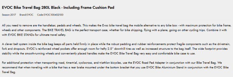 EVOC travel bag 280L 29ers