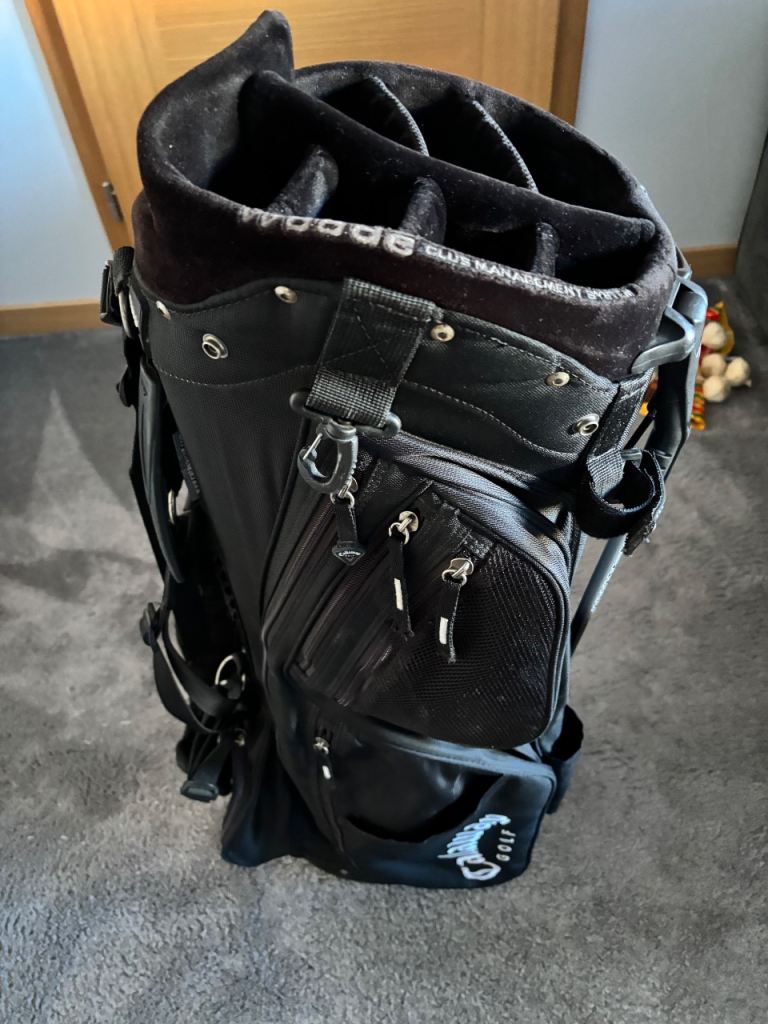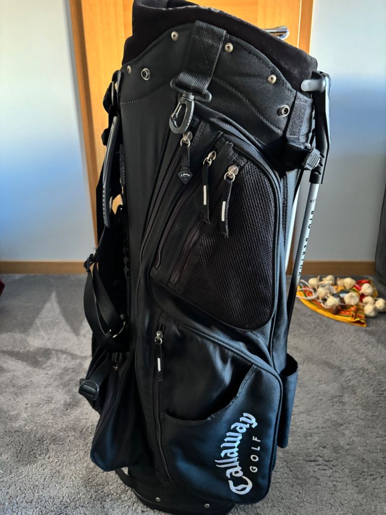 Matt black Callaway carry golf bag with auto legs, original rain hood and original Callaway double carry strap. Great bag in great condition (I’ve actually not used it much as I have a trolly bag) umbrella filament and 9 pockets, all zips working nothing broken or damaged. The bag top is in great condition too no scuffs or signs of wear. Smoke and pet free home collect from Thornton, great buy